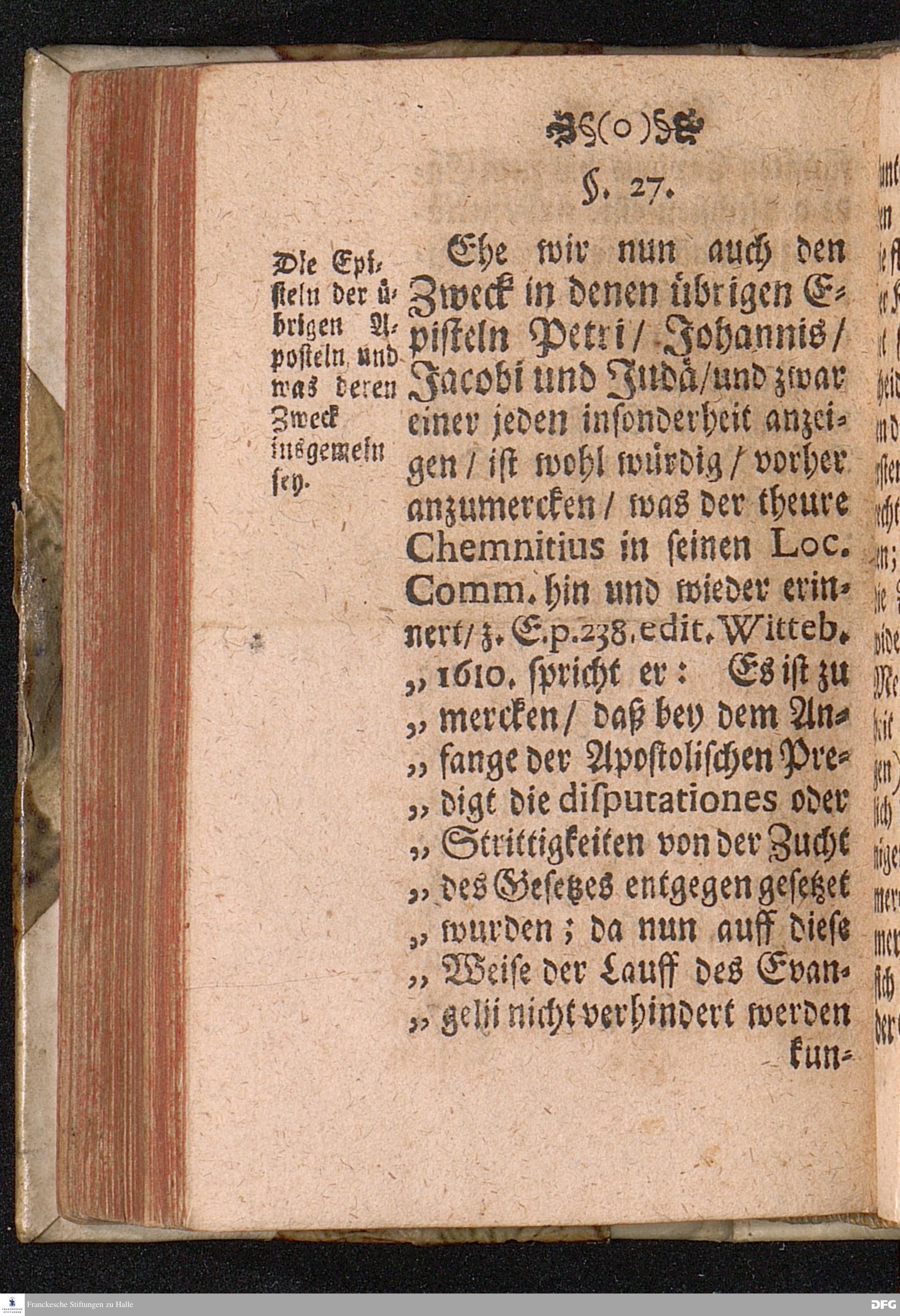 M. Aug. Hermann Franckens Gr.& Or.Lingg.P.P. & P.Glauch. Einleitung Zur Lesung Der H. Schrifft / Insonderheit Des Neuen Testaments. I. Für Ungelehrte u.Einfältige. II.Für Studiosos Theologiæ. III.Für Catechisirende. Darinnen Der Zweck und Inhalt der gantzen H.Schrifft / Fürnemlich aller und jeden Bücher Neues Testaments / und wie derselbe zur rechten Gründung in der Christlichen Lehre und Gottseligkeit anzuwenden sey / deutlich gezeiget wird. Halle / Gedruckt bey Christoph Salfelden. 1694.