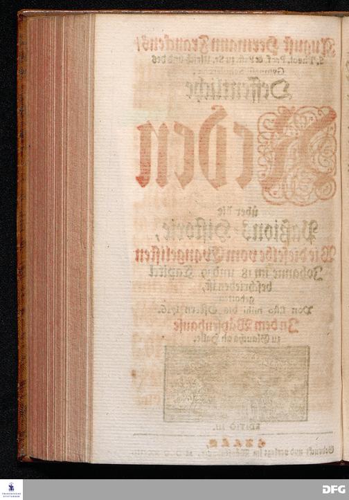 August Hermann Franckens / S.Theol.Prof.& Past.zu St.Ulrich und des Gymnasii Scholarchæ, Oeffentliche Reden über die Paßions=Historie, Wie dieselbe vom Evangelisten Johanne im 18.u.19. Capitel beschrieben ist, gehalten Von Esto mihi bis Ostern 1716. In dem Wäysenhause zu Glaucha an Halle. EDITIO III. HALLE, Gedruckt und verlegt im Wäysenhause, MDCCXXXIII.