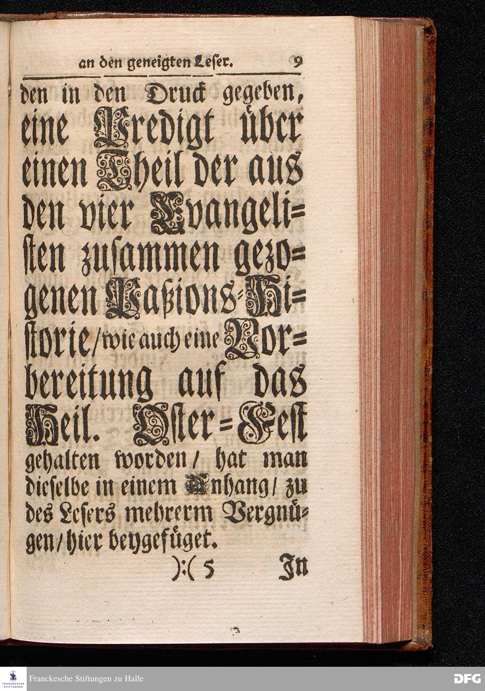 August Hermann Franckens / S.Theol.Prof.& Past.zu St.Ulrich und des Gymnasii Scholarchæ, Oeffentliche Reden über die Paßions=Historie, Wie dieselbe vom Evangelisten Johanne im 18.u.19. Capitel beschrieben ist, gehalten Von Esto mihi bis Ostern 1716. In dem Wäysenhause zu Glaucha an Halle. EDITIO III. HALLE, Gedruckt und verlegt im Wäysenhause, MDCCXXXIII.