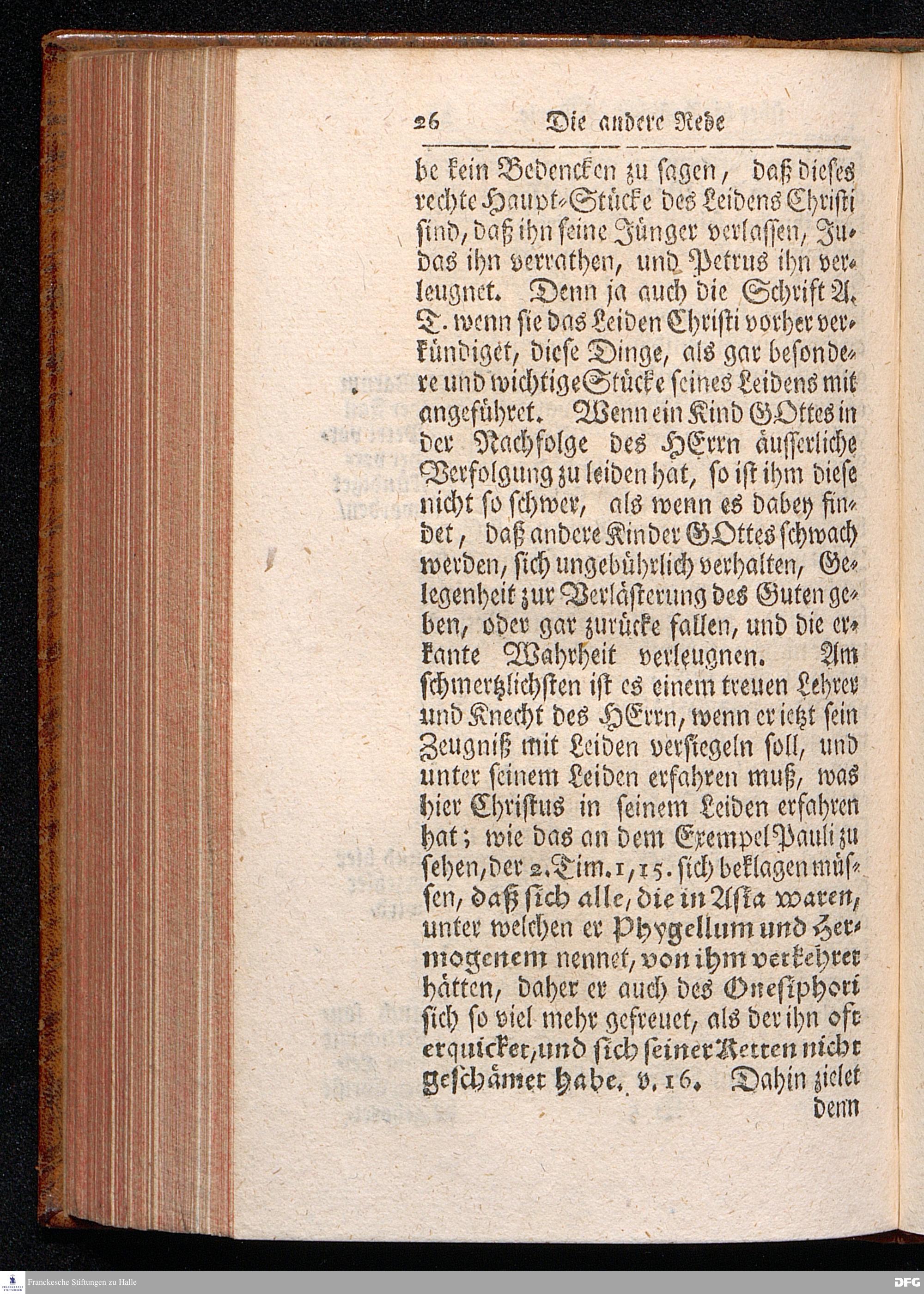 August Hermann Franckens / S.Theol.Prof.& Past.zu St.Ulrich und des Gymnasii Scholarchæ, Oeffentliche Reden über die Paßions=Historie, Wie dieselbe vom Evangelisten Johanne im 18.u.19. Capitel beschrieben ist, gehalten Von Esto mihi bis Ostern 1716. In dem Wäysenhause zu Glaucha an Halle. EDITIO III. HALLE, Gedruckt und verlegt im Wäysenhause, MDCCXXXIII.
