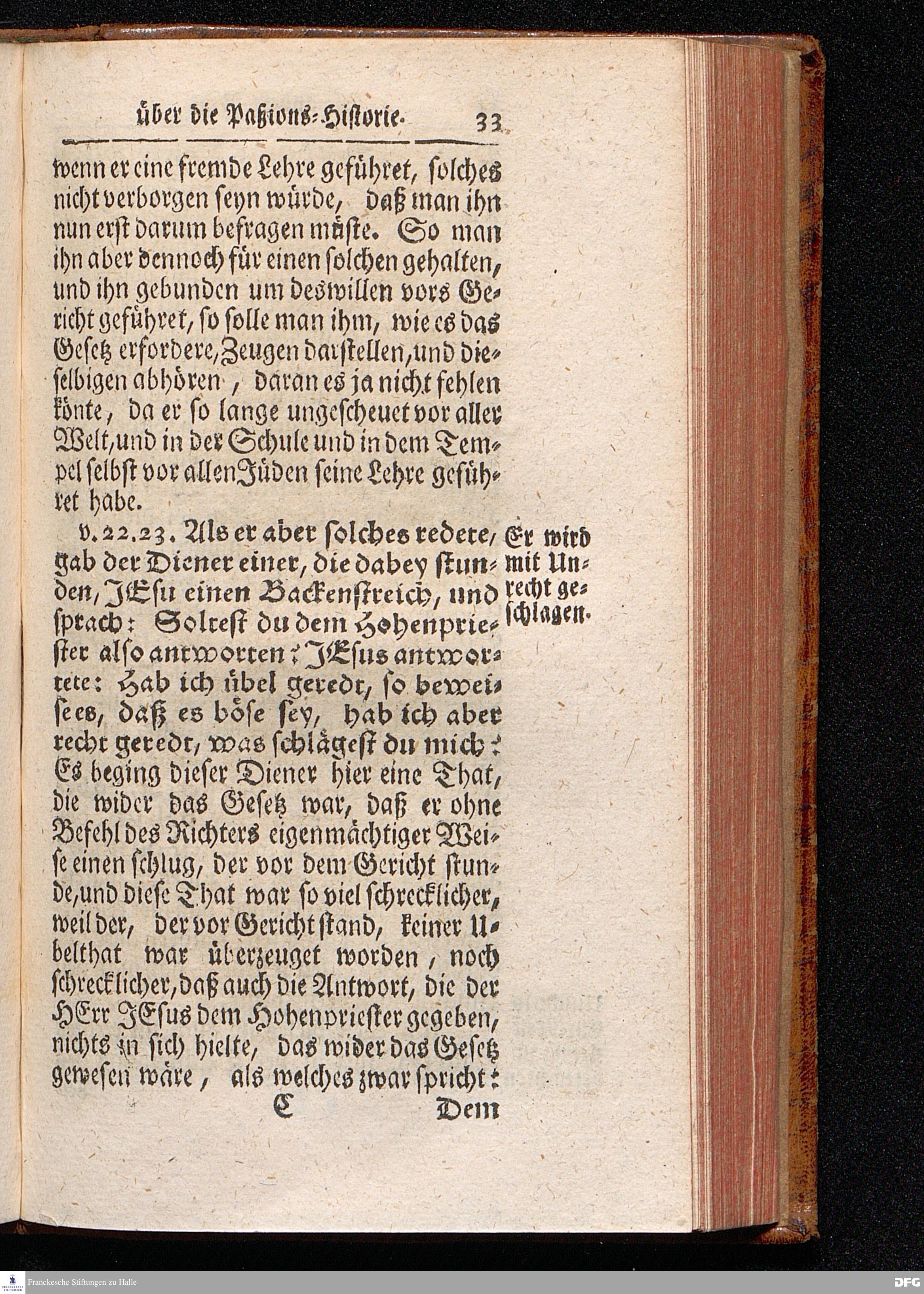 August Hermann Franckens / S.Theol.Prof.& Past.zu St.Ulrich und des Gymnasii Scholarchæ, Oeffentliche Reden über die Paßions=Historie, Wie dieselbe vom Evangelisten Johanne im 18.u.19. Capitel beschrieben ist, gehalten Von Esto mihi bis Ostern 1716. In dem Wäysenhause zu Glaucha an Halle. EDITIO III. HALLE, Gedruckt und verlegt im Wäysenhause, MDCCXXXIII.