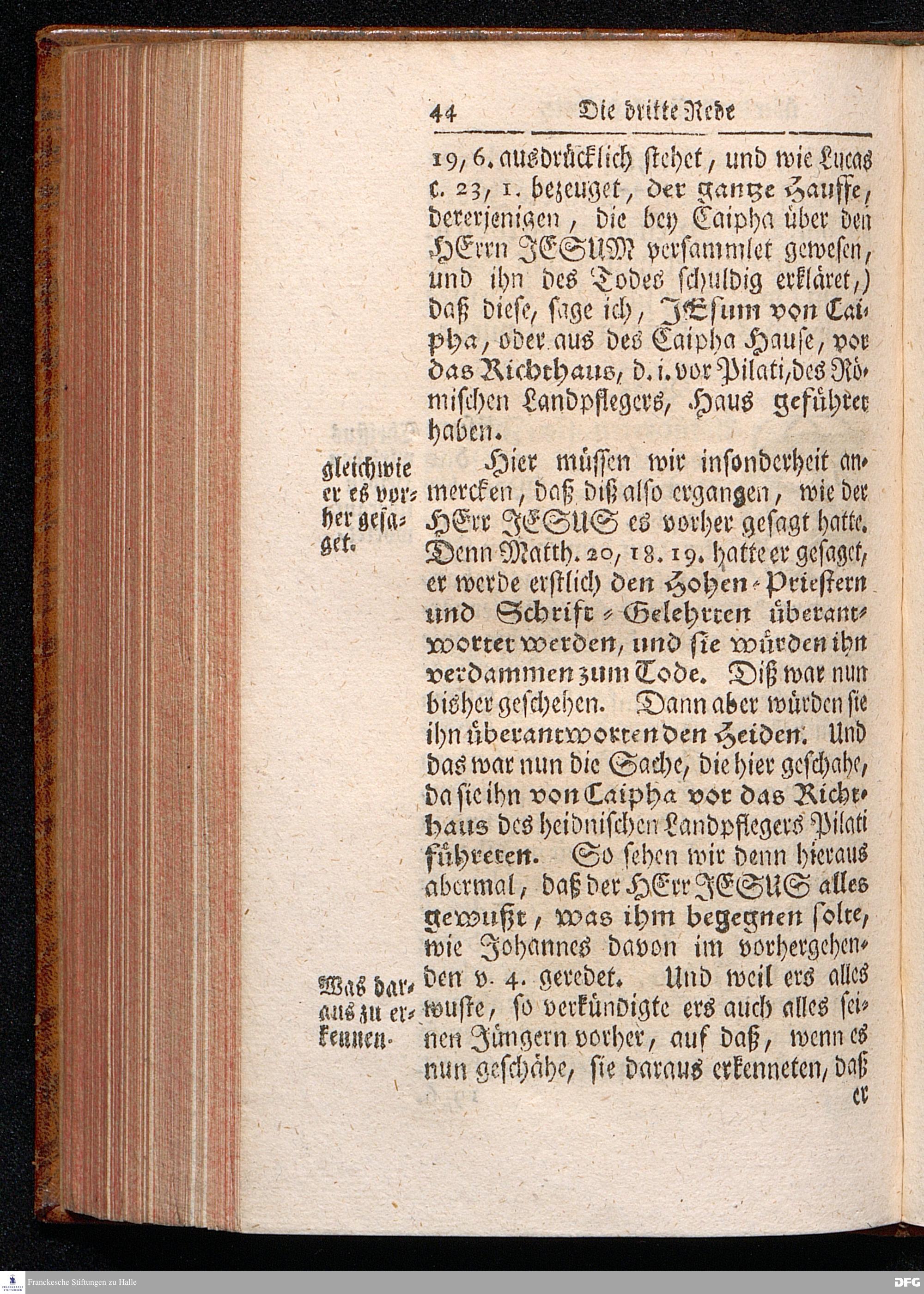 August Hermann Franckens / S.Theol.Prof.& Past.zu St.Ulrich und des Gymnasii Scholarchæ, Oeffentliche Reden über die Paßions=Historie, Wie dieselbe vom Evangelisten Johanne im 18.u.19. Capitel beschrieben ist, gehalten Von Esto mihi bis Ostern 1716. In dem Wäysenhause zu Glaucha an Halle. EDITIO III. HALLE, Gedruckt und verlegt im Wäysenhause, MDCCXXXIII.