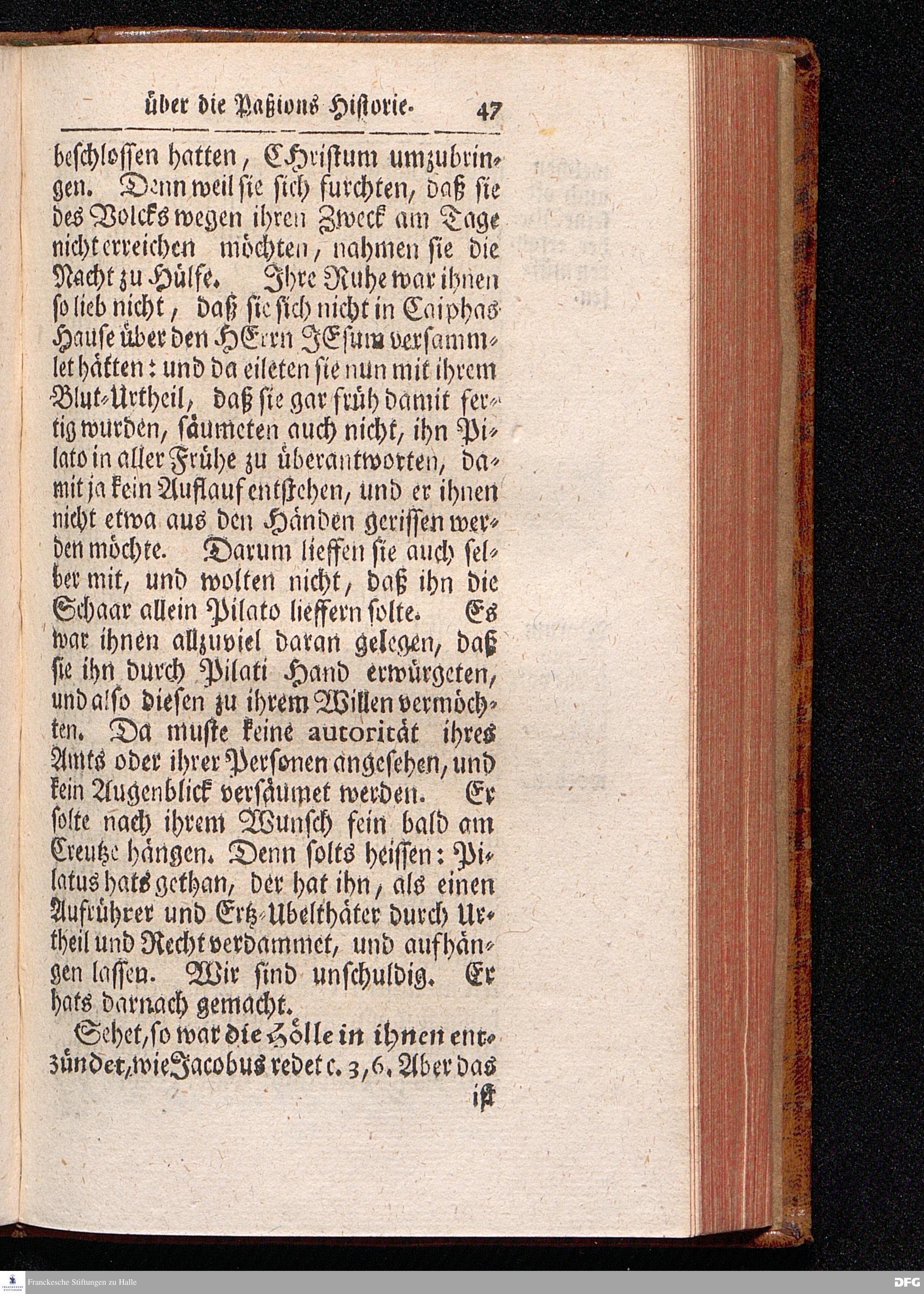 August Hermann Franckens / S.Theol.Prof.& Past.zu St.Ulrich und des Gymnasii Scholarchæ, Oeffentliche Reden über die Paßions=Historie, Wie dieselbe vom Evangelisten Johanne im 18.u.19. Capitel beschrieben ist, gehalten Von Esto mihi bis Ostern 1716. In dem Wäysenhause zu Glaucha an Halle. EDITIO III. HALLE, Gedruckt und verlegt im Wäysenhause, MDCCXXXIII.
