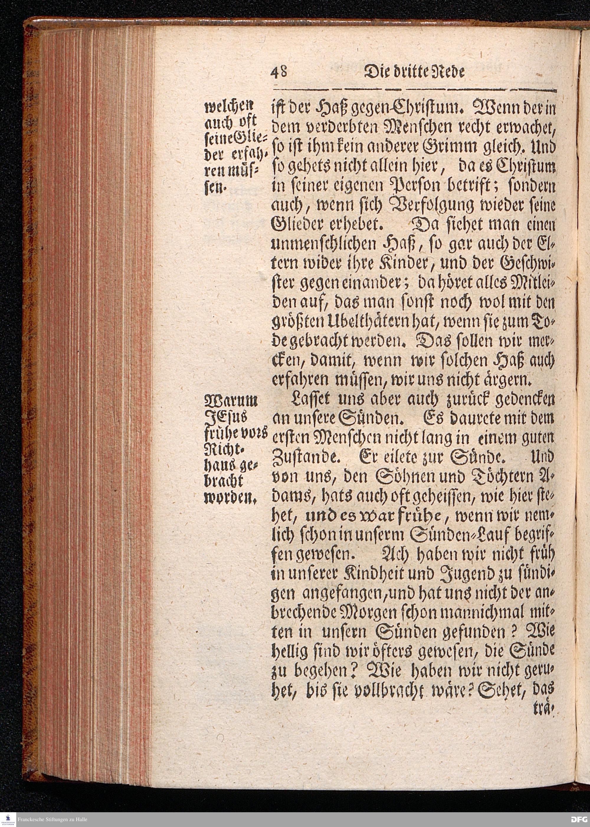 August Hermann Franckens / S.Theol.Prof.& Past.zu St.Ulrich und des Gymnasii Scholarchæ, Oeffentliche Reden über die Paßions=Historie, Wie dieselbe vom Evangelisten Johanne im 18.u.19. Capitel beschrieben ist, gehalten Von Esto mihi bis Ostern 1716. In dem Wäysenhause zu Glaucha an Halle. EDITIO III. HALLE, Gedruckt und verlegt im Wäysenhause, MDCCXXXIII.