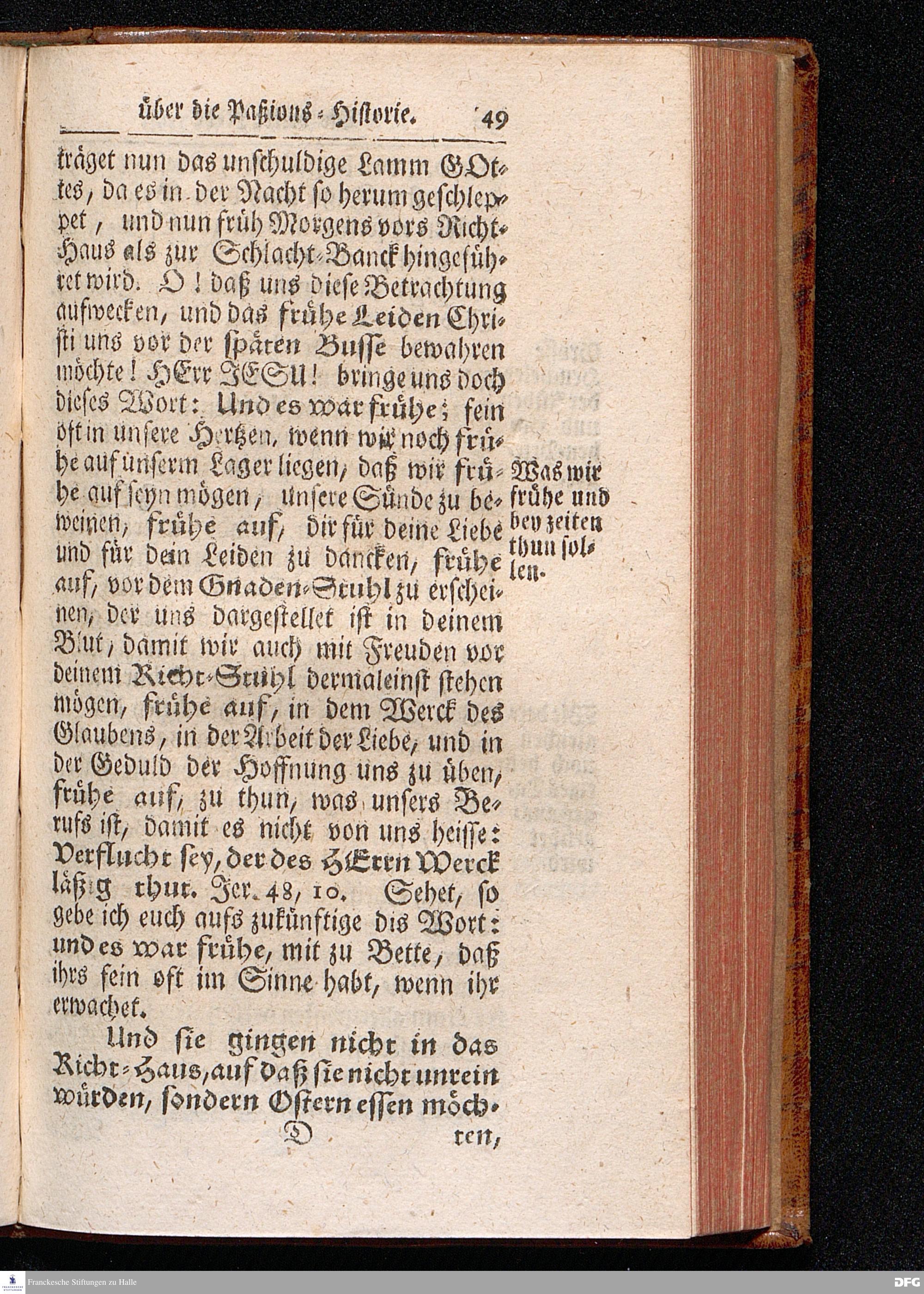 August Hermann Franckens / S.Theol.Prof.& Past.zu St.Ulrich und des Gymnasii Scholarchæ, Oeffentliche Reden über die Paßions=Historie, Wie dieselbe vom Evangelisten Johanne im 18.u.19. Capitel beschrieben ist, gehalten Von Esto mihi bis Ostern 1716. In dem Wäysenhause zu Glaucha an Halle. EDITIO III. HALLE, Gedruckt und verlegt im Wäysenhause, MDCCXXXIII.