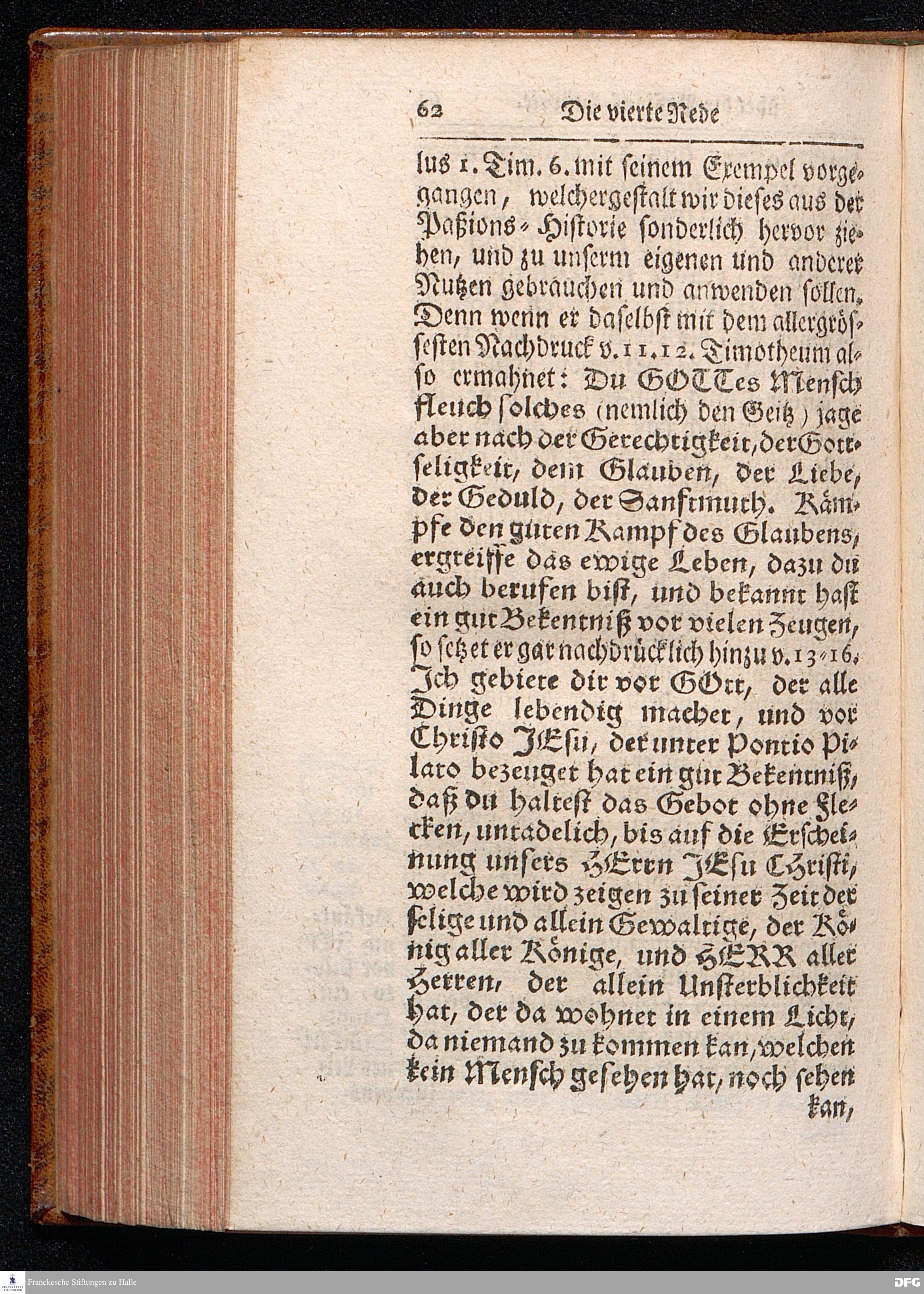 August Hermann Franckens / S.Theol.Prof.& Past.zu St.Ulrich und des Gymnasii Scholarchæ, Oeffentliche Reden über die Paßions=Historie, Wie dieselbe vom Evangelisten Johanne im 18.u.19. Capitel beschrieben ist, gehalten Von Esto mihi bis Ostern 1716. In dem Wäysenhause zu Glaucha an Halle. EDITIO III. HALLE, Gedruckt und verlegt im Wäysenhause, MDCCXXXIII.