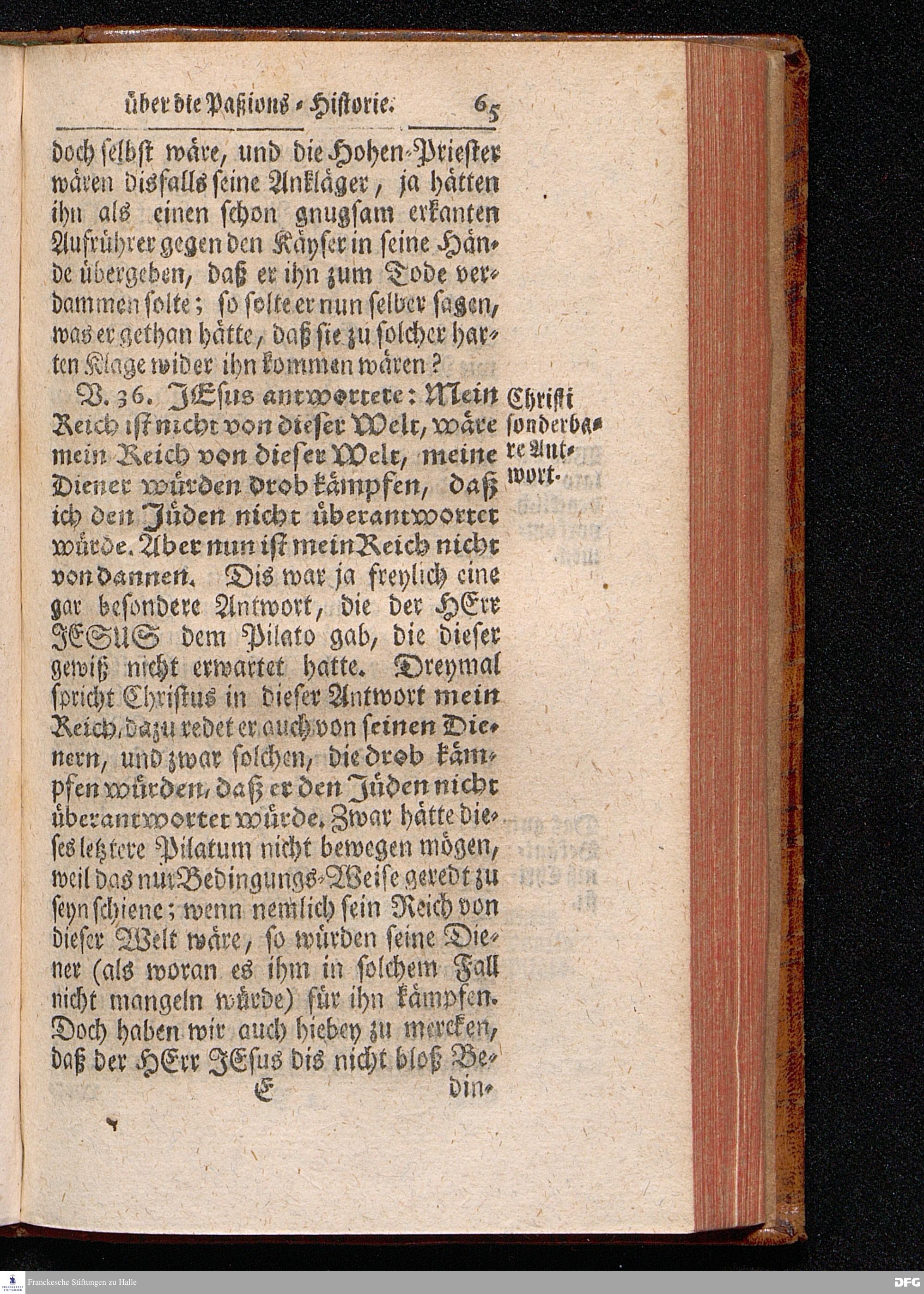 August Hermann Franckens / S.Theol.Prof.& Past.zu St.Ulrich und des Gymnasii Scholarchæ, Oeffentliche Reden über die Paßions=Historie, Wie dieselbe vom Evangelisten Johanne im 18.u.19. Capitel beschrieben ist, gehalten Von Esto mihi bis Ostern 1716. In dem Wäysenhause zu Glaucha an Halle. EDITIO III. HALLE, Gedruckt und verlegt im Wäysenhause, MDCCXXXIII.