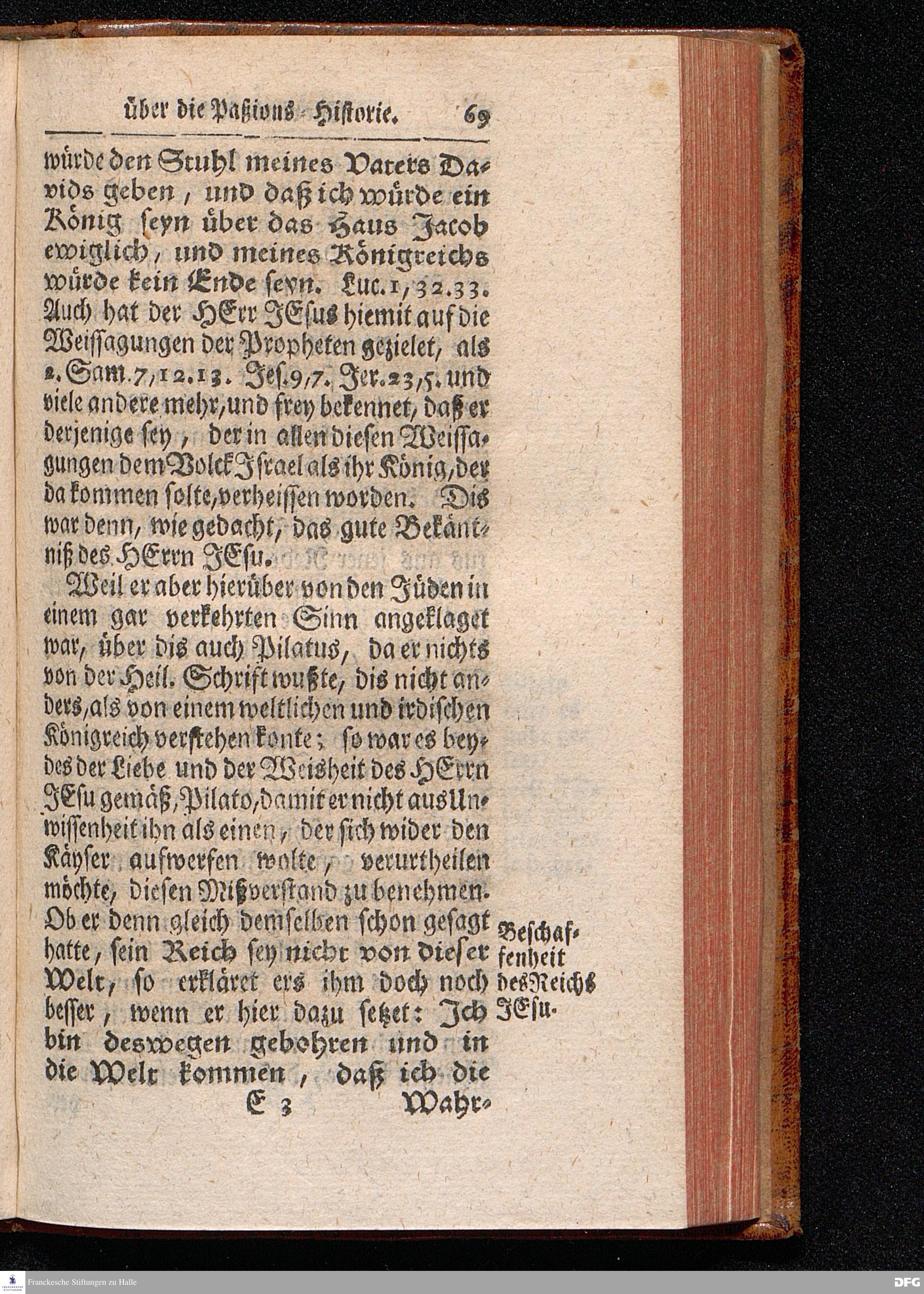 August Hermann Franckens / S.Theol.Prof.& Past.zu St.Ulrich und des Gymnasii Scholarchæ, Oeffentliche Reden über die Paßions=Historie, Wie dieselbe vom Evangelisten Johanne im 18.u.19. Capitel beschrieben ist, gehalten Von Esto mihi bis Ostern 1716. In dem Wäysenhause zu Glaucha an Halle. EDITIO III. HALLE, Gedruckt und verlegt im Wäysenhause, MDCCXXXIII.