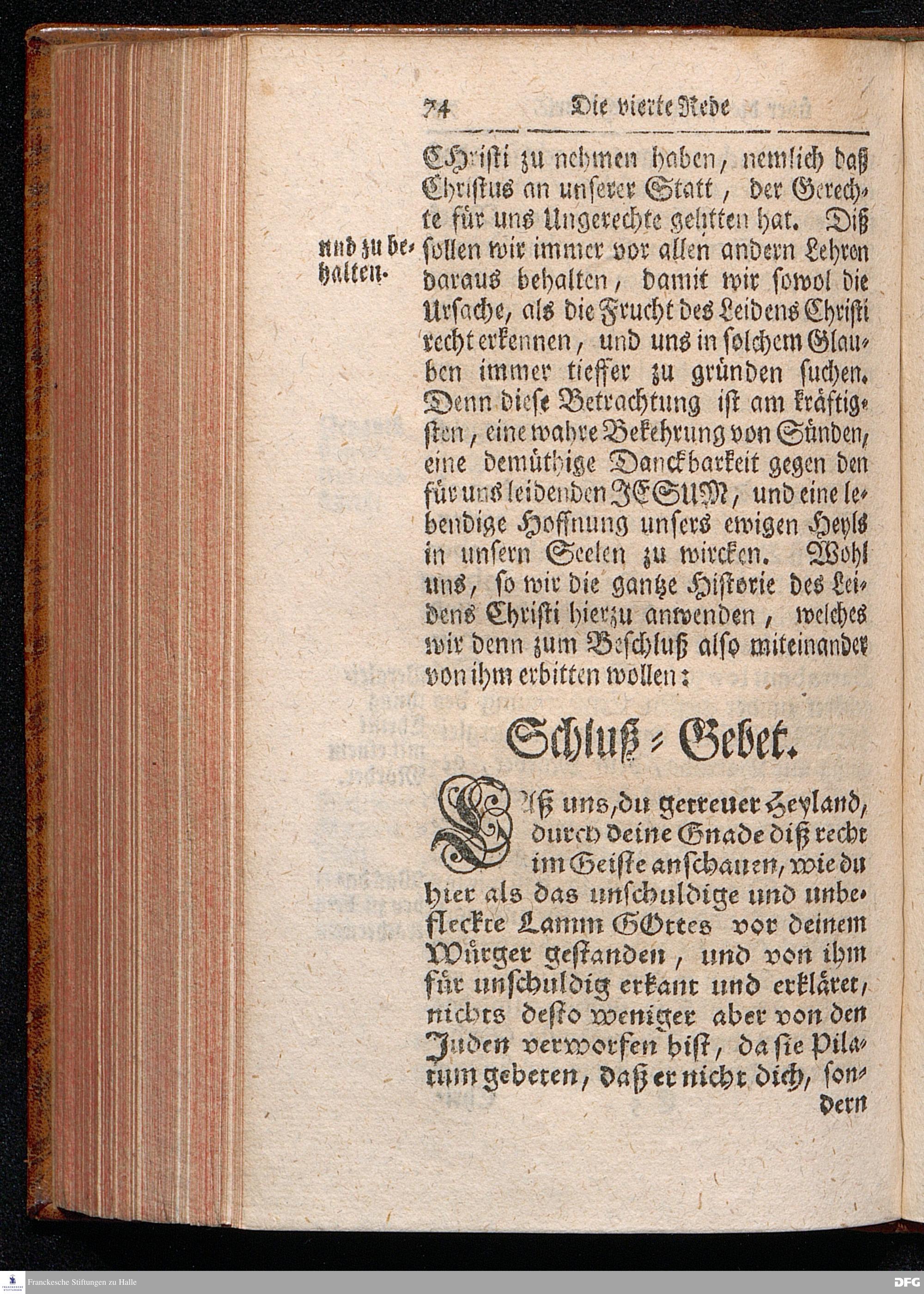 August Hermann Franckens / S.Theol.Prof.& Past.zu St.Ulrich und des Gymnasii Scholarchæ, Oeffentliche Reden über die Paßions=Historie, Wie dieselbe vom Evangelisten Johanne im 18.u.19. Capitel beschrieben ist, gehalten Von Esto mihi bis Ostern 1716. In dem Wäysenhause zu Glaucha an Halle. EDITIO III. HALLE, Gedruckt und verlegt im Wäysenhause, MDCCXXXIII.