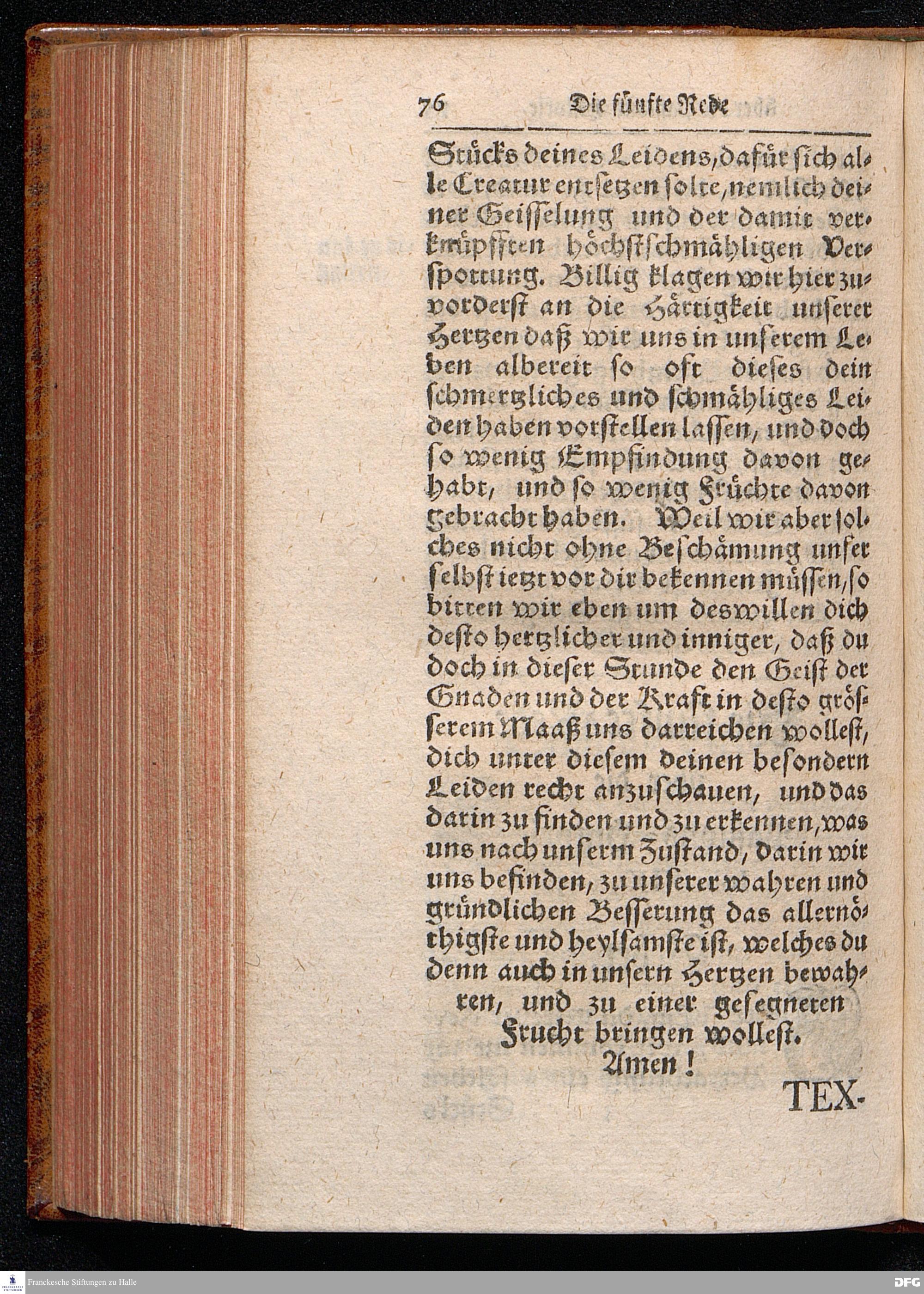 August Hermann Franckens / S.Theol.Prof.& Past.zu St.Ulrich und des Gymnasii Scholarchæ, Oeffentliche Reden über die Paßions=Historie, Wie dieselbe vom Evangelisten Johanne im 18.u.19. Capitel beschrieben ist, gehalten Von Esto mihi bis Ostern 1716. In dem Wäysenhause zu Glaucha an Halle. EDITIO III. HALLE, Gedruckt und verlegt im Wäysenhause, MDCCXXXIII.