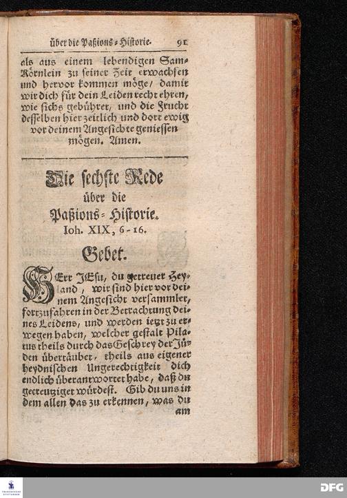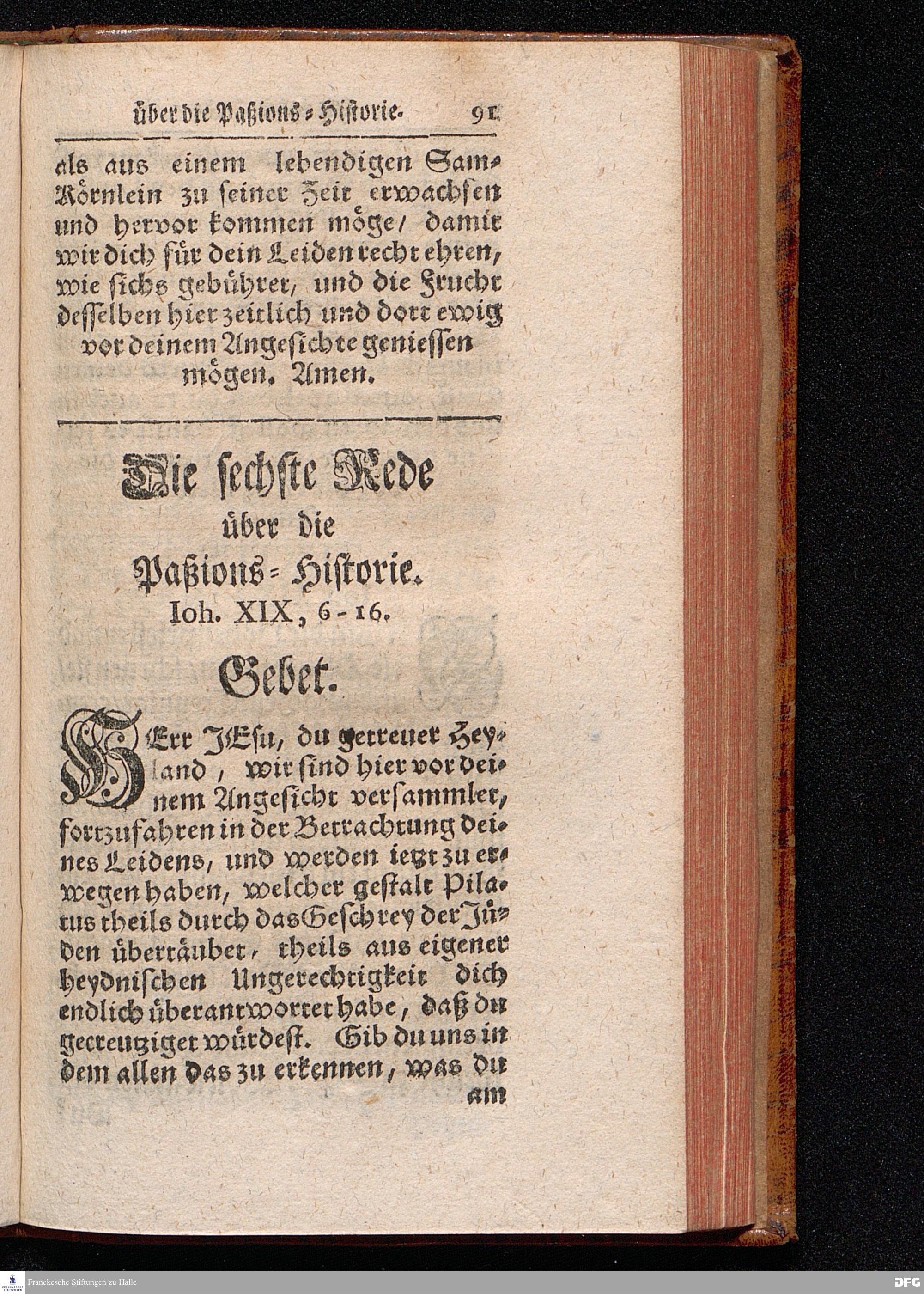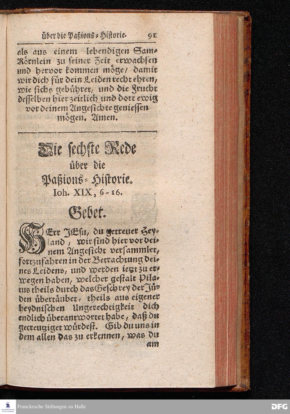 August Hermann Franckens / S.Theol.Prof.& Past.zu St.Ulrich und des Gymnasii Scholarchæ, Oeffentliche Reden über die Paßions=Historie, Wie dieselbe vom Evangelisten Johanne im 18.u.19. Capitel beschrieben ist, gehalten Von Esto mihi bis Ostern 1716. In dem Wäysenhause zu Glaucha an Halle. EDITIO III. HALLE, Gedruckt und verlegt im Wäysenhause, MDCCXXXIII.