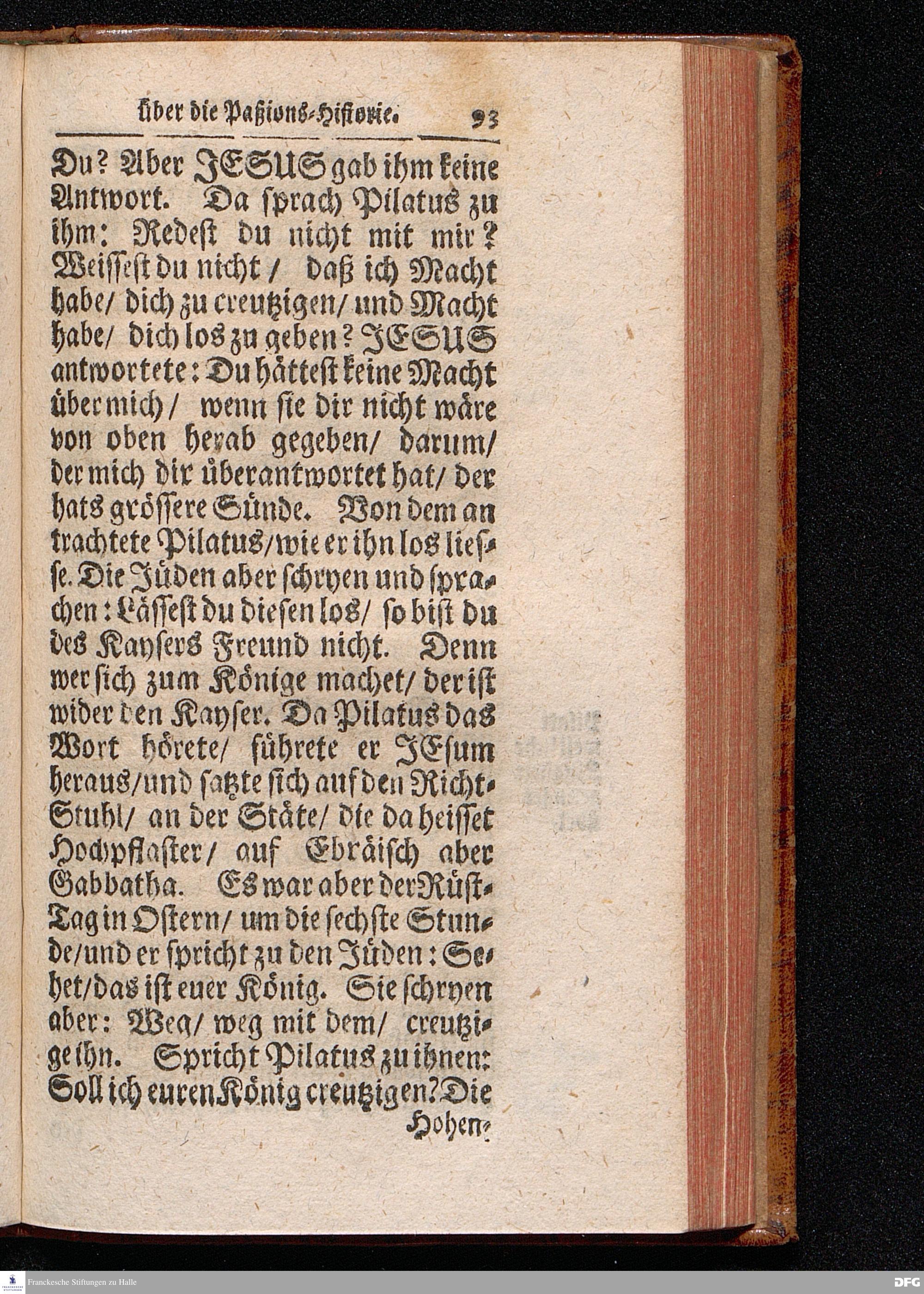 August Hermann Franckens / S.Theol.Prof.& Past.zu St.Ulrich und des Gymnasii Scholarchæ, Oeffentliche Reden über die Paßions=Historie, Wie dieselbe vom Evangelisten Johanne im 18.u.19. Capitel beschrieben ist, gehalten Von Esto mihi bis Ostern 1716. In dem Wäysenhause zu Glaucha an Halle. EDITIO III. HALLE, Gedruckt und verlegt im Wäysenhause, MDCCXXXIII.
