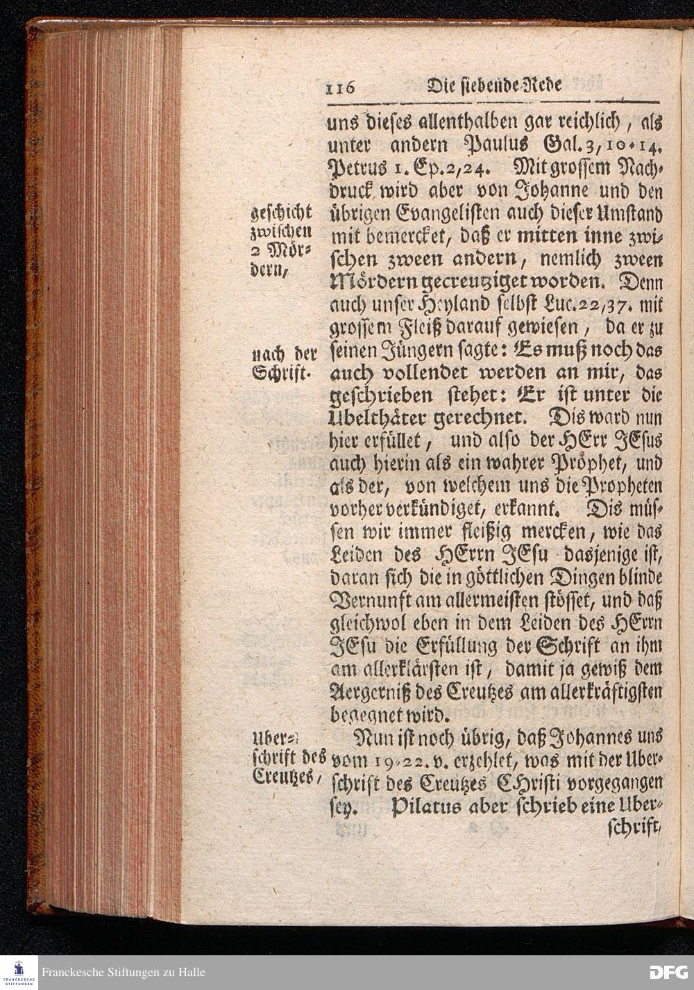 August Hermann Franckens / S.Theol.Prof.& Past.zu St.Ulrich und des Gymnasii Scholarchæ, Oeffentliche Reden über die Paßions=Historie, Wie dieselbe vom Evangelisten Johanne im 18.u.19. Capitel beschrieben ist, gehalten Von Esto mihi bis Ostern 1716. In dem Wäysenhause zu Glaucha an Halle. EDITIO III. HALLE, Gedruckt und verlegt im Wäysenhause, MDCCXXXIII.