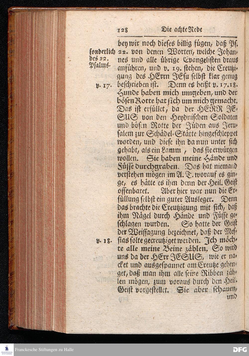 August Hermann Franckens / S.Theol.Prof.& Past.zu St.Ulrich und des Gymnasii Scholarchæ, Oeffentliche Reden über die Paßions=Historie, Wie dieselbe vom Evangelisten Johanne im 18.u.19. Capitel beschrieben ist, gehalten Von Esto mihi bis Ostern 1716. In dem Wäysenhause zu Glaucha an Halle. EDITIO III. HALLE, Gedruckt und verlegt im Wäysenhause, MDCCXXXIII.