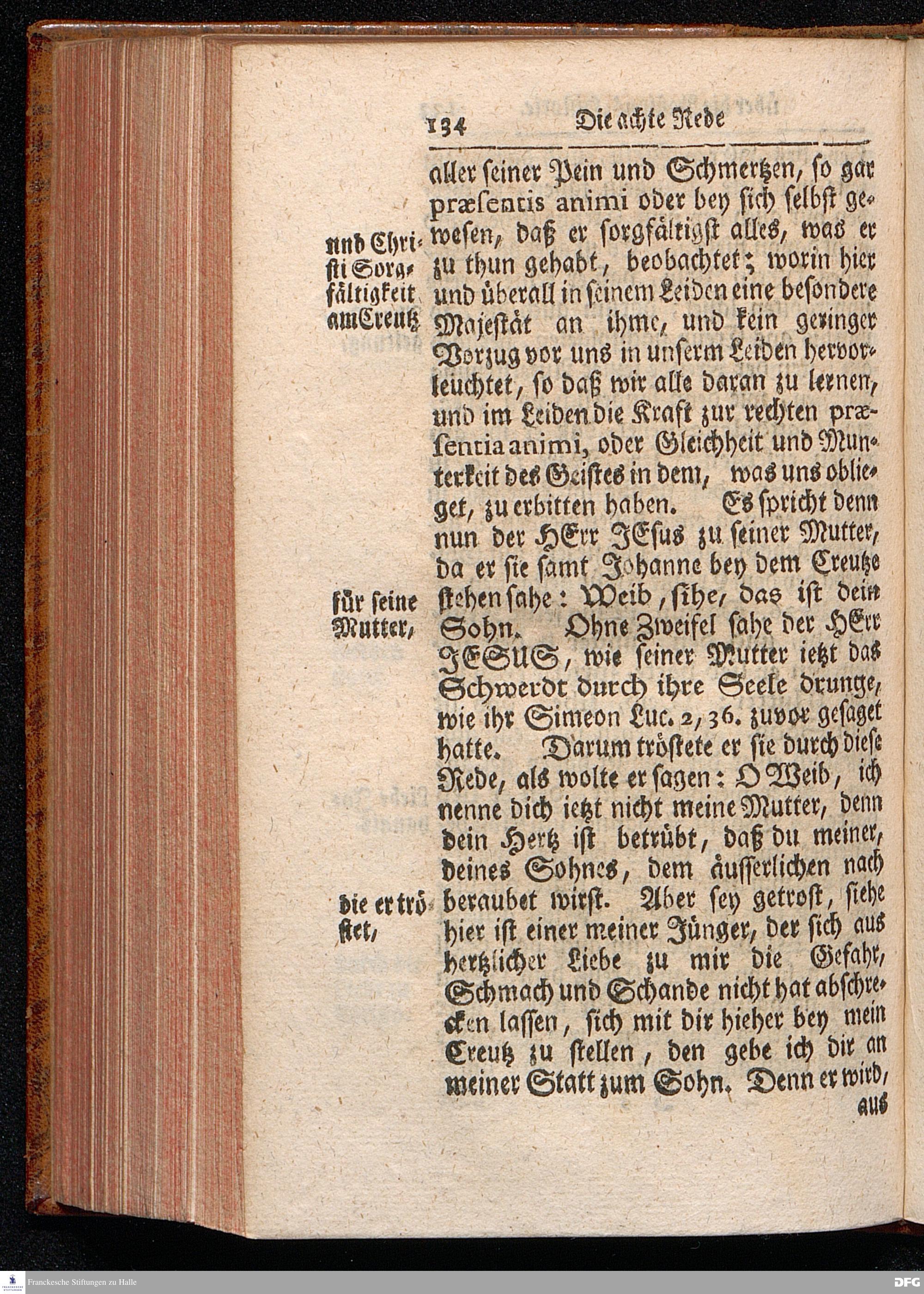 August Hermann Franckens / S.Theol.Prof.& Past.zu St.Ulrich und des Gymnasii Scholarchæ, Oeffentliche Reden über die Paßions=Historie, Wie dieselbe vom Evangelisten Johanne im 18.u.19. Capitel beschrieben ist, gehalten Von Esto mihi bis Ostern 1716. In dem Wäysenhause zu Glaucha an Halle. EDITIO III. HALLE, Gedruckt und verlegt im Wäysenhause, MDCCXXXIII.