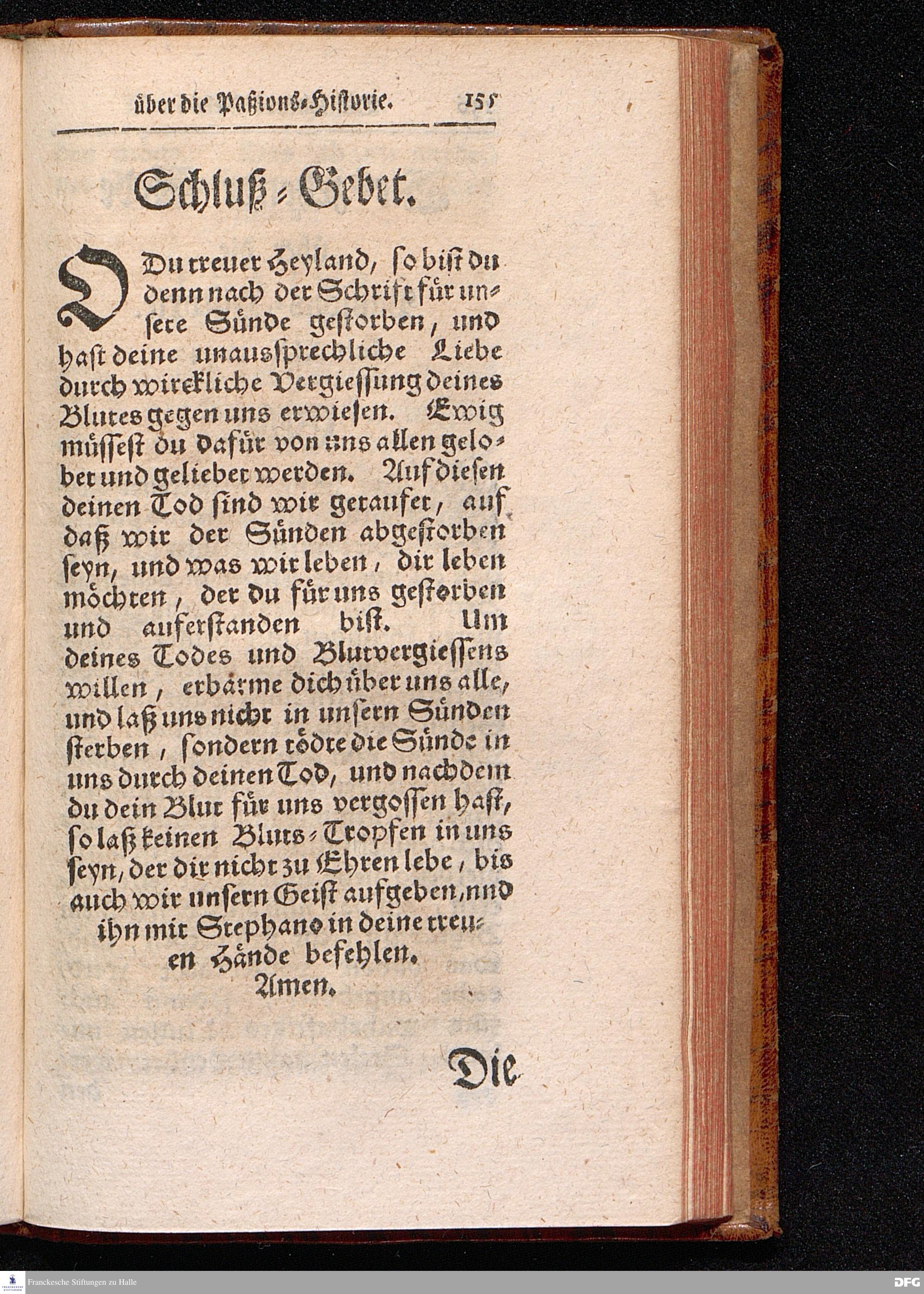August Hermann Franckens / S.Theol.Prof.& Past.zu St.Ulrich und des Gymnasii Scholarchæ, Oeffentliche Reden über die Paßions=Historie, Wie dieselbe vom Evangelisten Johanne im 18.u.19. Capitel beschrieben ist, gehalten Von Esto mihi bis Ostern 1716. In dem Wäysenhause zu Glaucha an Halle. EDITIO III. HALLE, Gedruckt und verlegt im Wäysenhause, MDCCXXXIII.