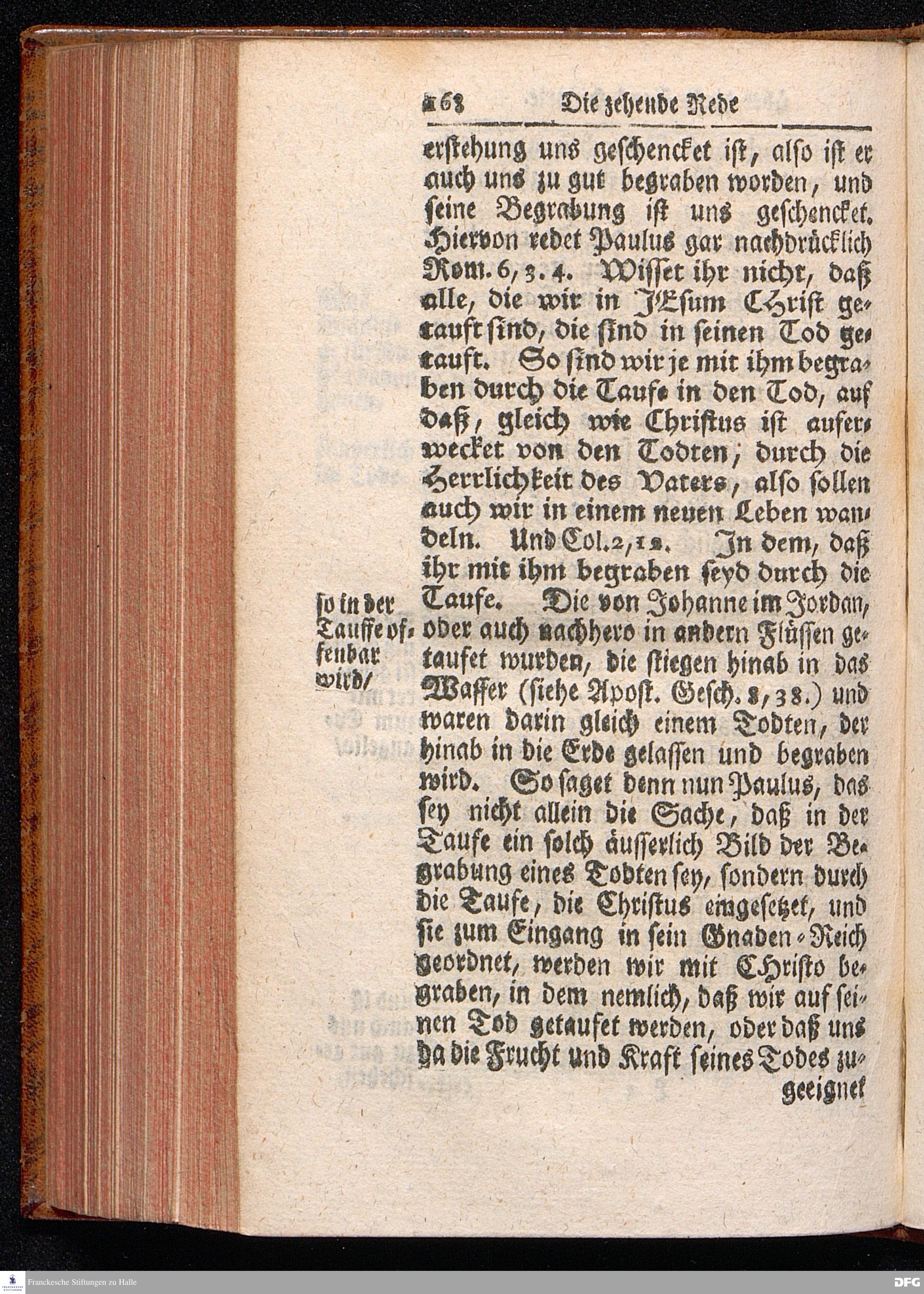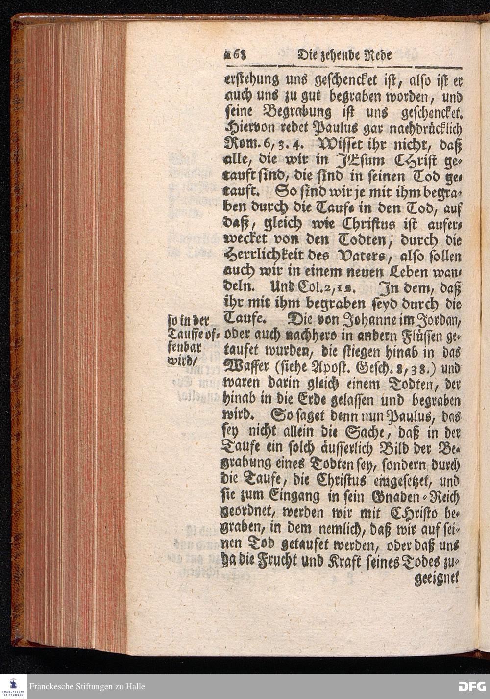 August Hermann Franckens / S.Theol.Prof.& Past.zu St.Ulrich und des Gymnasii Scholarchæ, Oeffentliche Reden über die Paßions=Historie, Wie dieselbe vom Evangelisten Johanne im 18.u.19. Capitel beschrieben ist, gehalten Von Esto mihi bis Ostern 1716. In dem Wäysenhause zu Glaucha an Halle. EDITIO III. HALLE, Gedruckt und verlegt im Wäysenhause, MDCCXXXIII.