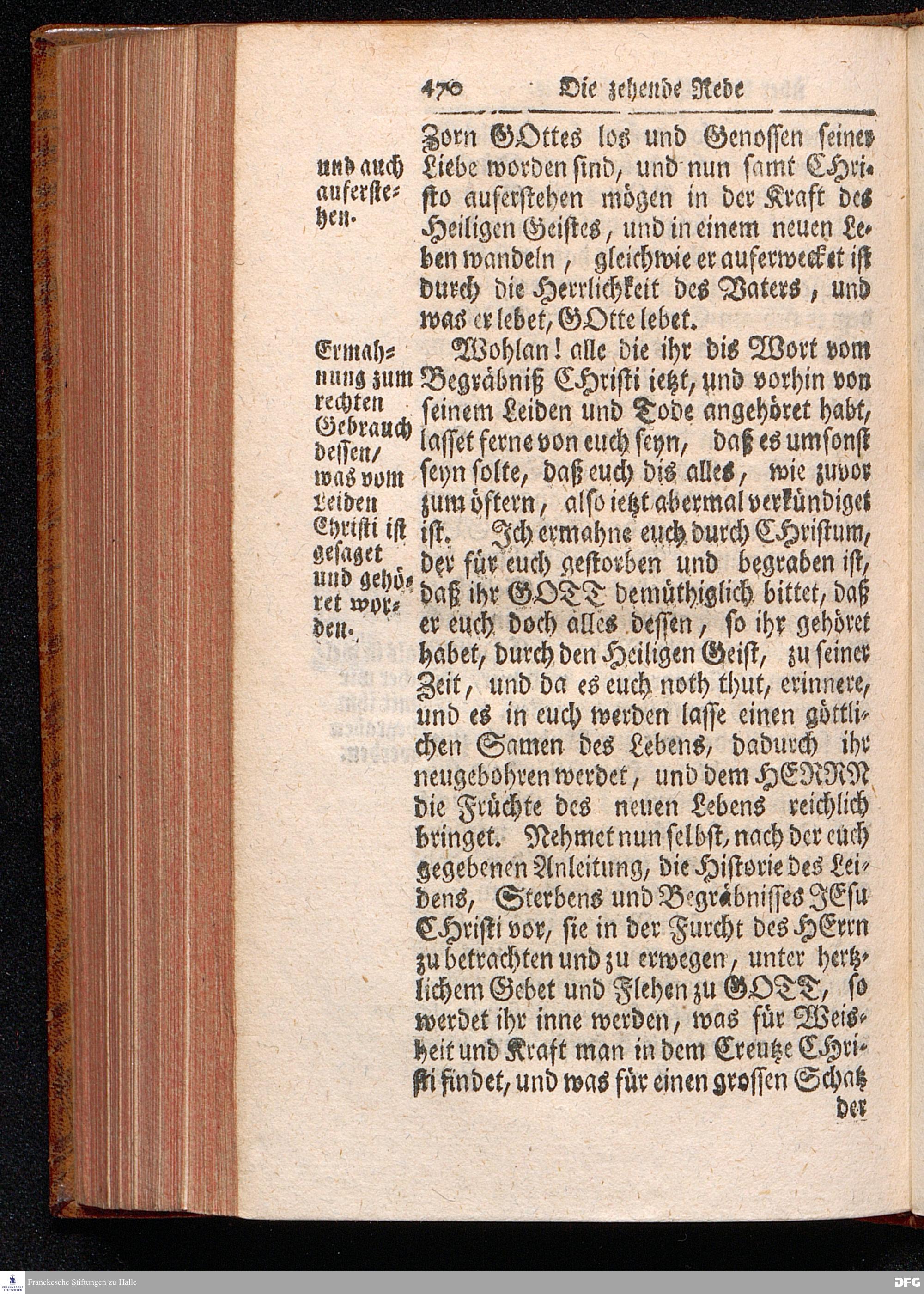 August Hermann Franckens / S.Theol.Prof.& Past.zu St.Ulrich und des Gymnasii Scholarchæ, Oeffentliche Reden über die Paßions=Historie, Wie dieselbe vom Evangelisten Johanne im 18.u.19. Capitel beschrieben ist, gehalten Von Esto mihi bis Ostern 1716. In dem Wäysenhause zu Glaucha an Halle. EDITIO III. HALLE, Gedruckt und verlegt im Wäysenhause, MDCCXXXIII.