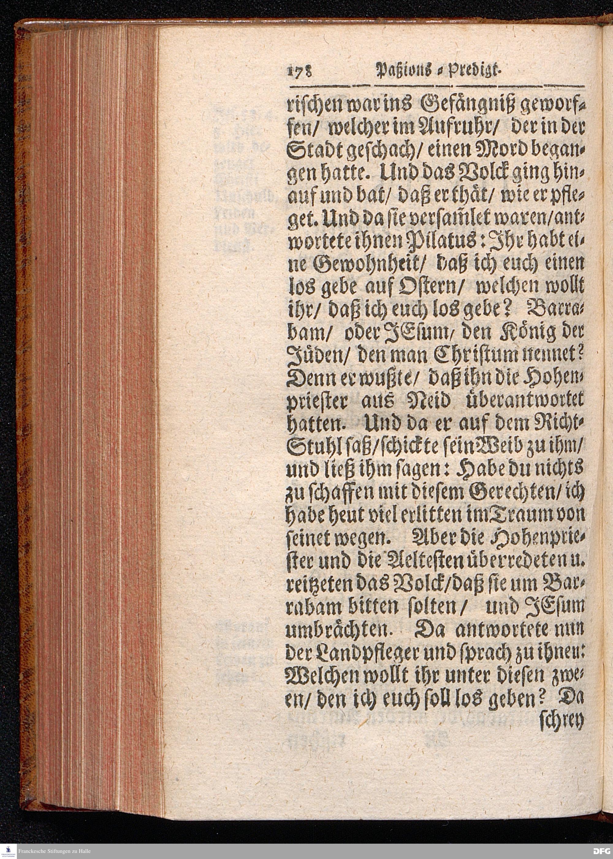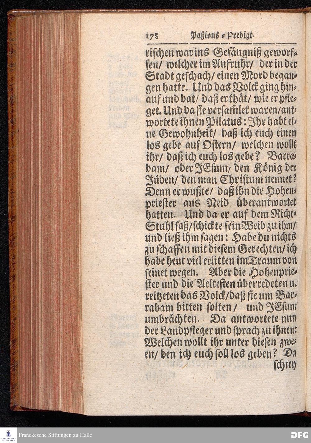 August Hermann Franckens / S.Theol.Prof.& Past.zu St.Ulrich und des Gymnasii Scholarchæ, Oeffentliche Reden über die Paßions=Historie, Wie dieselbe vom Evangelisten Johanne im 18.u.19. Capitel beschrieben ist, gehalten Von Esto mihi bis Ostern 1716. In dem Wäysenhause zu Glaucha an Halle. EDITIO III. HALLE, Gedruckt und verlegt im Wäysenhause, MDCCXXXIII.