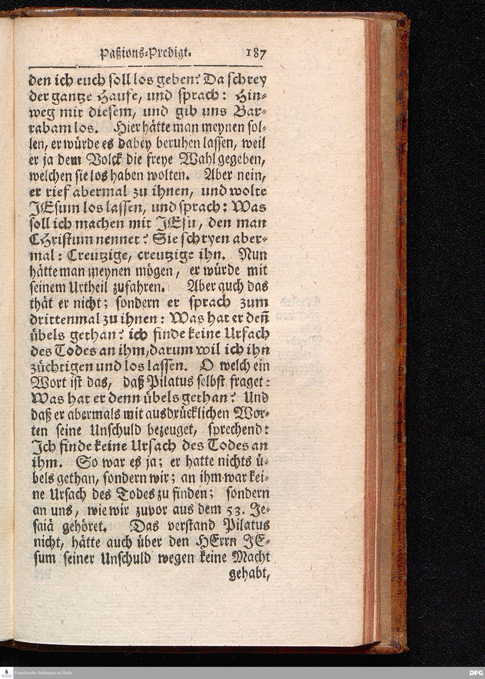 August Hermann Franckens / S.Theol.Prof.& Past.zu St.Ulrich und des Gymnasii Scholarchæ, Oeffentliche Reden über die Paßions=Historie, Wie dieselbe vom Evangelisten Johanne im 18.u.19. Capitel beschrieben ist, gehalten Von Esto mihi bis Ostern 1716. In dem Wäysenhause zu Glaucha an Halle. EDITIO III. HALLE, Gedruckt und verlegt im Wäysenhause, MDCCXXXIII.
