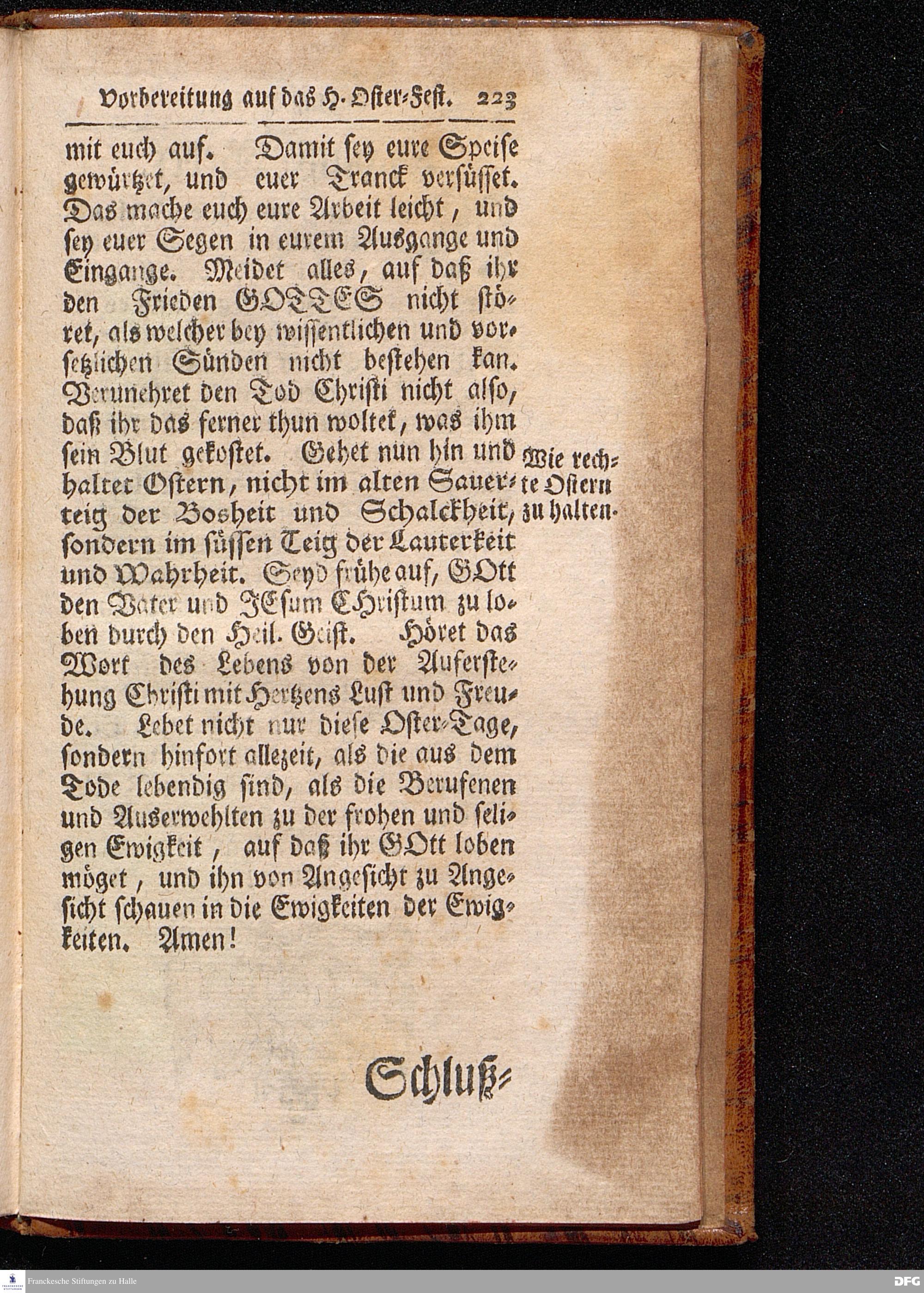 August Hermann Franckens / S.Theol.Prof.& Past.zu St.Ulrich und des Gymnasii Scholarchæ, Oeffentliche Reden über die Paßions=Historie, Wie dieselbe vom Evangelisten Johanne im 18.u.19. Capitel beschrieben ist, gehalten Von Esto mihi bis Ostern 1716. In dem Wäysenhause zu Glaucha an Halle. EDITIO III. HALLE, Gedruckt und verlegt im Wäysenhause, MDCCXXXIII.