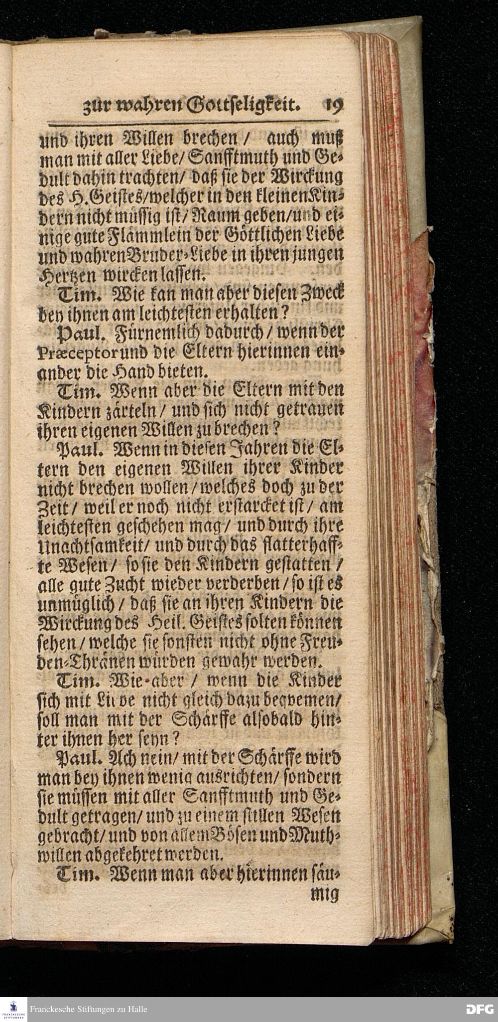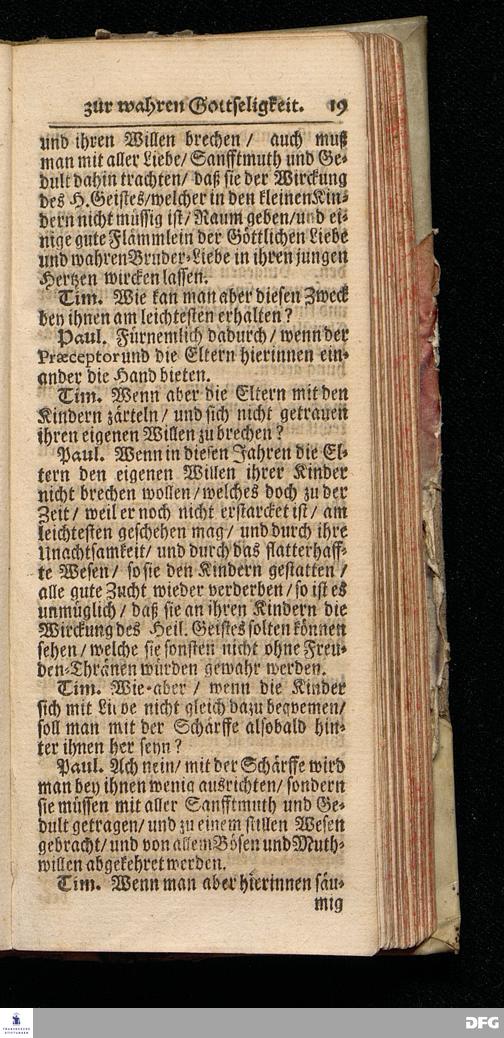 August Hermann Franckens S.Th.Pr.Ord. & Past.Glauch. Unterricht / Wie Die Kinder zur wahren Gottseligkeit und Christlichen Klugheit anzuführen sind / Nunmehro Mit Genehmhaltung des Autoris in zwey Gespräche verfasset von Ambrosius Wirth / jüngsten Suden=Prediger im neuen Spital zu Nürnberg. Christian=Erlang / Gedruckt bey Joh.Friedrich Regelein / In Verlegung des Waysenhauses zu Halle. Anno 1705.