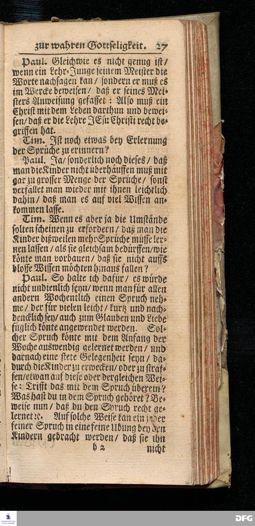 August Hermann Franckens S.Th.Pr.Ord. & Past.Glauch. Unterricht / Wie Die Kinder zur wahren Gottseligkeit und Christlichen Klugheit anzuführen sind / Nunmehro Mit Genehmhaltung des Autoris in zwey Gespräche verfasset von Ambrosius Wirth / jüngsten Suden=Prediger im neuen Spital zu Nürnberg. Christian=Erlang / Gedruckt bey Joh.Friedrich Regelein / In Verlegung des Waysenhauses zu Halle. Anno 1705.