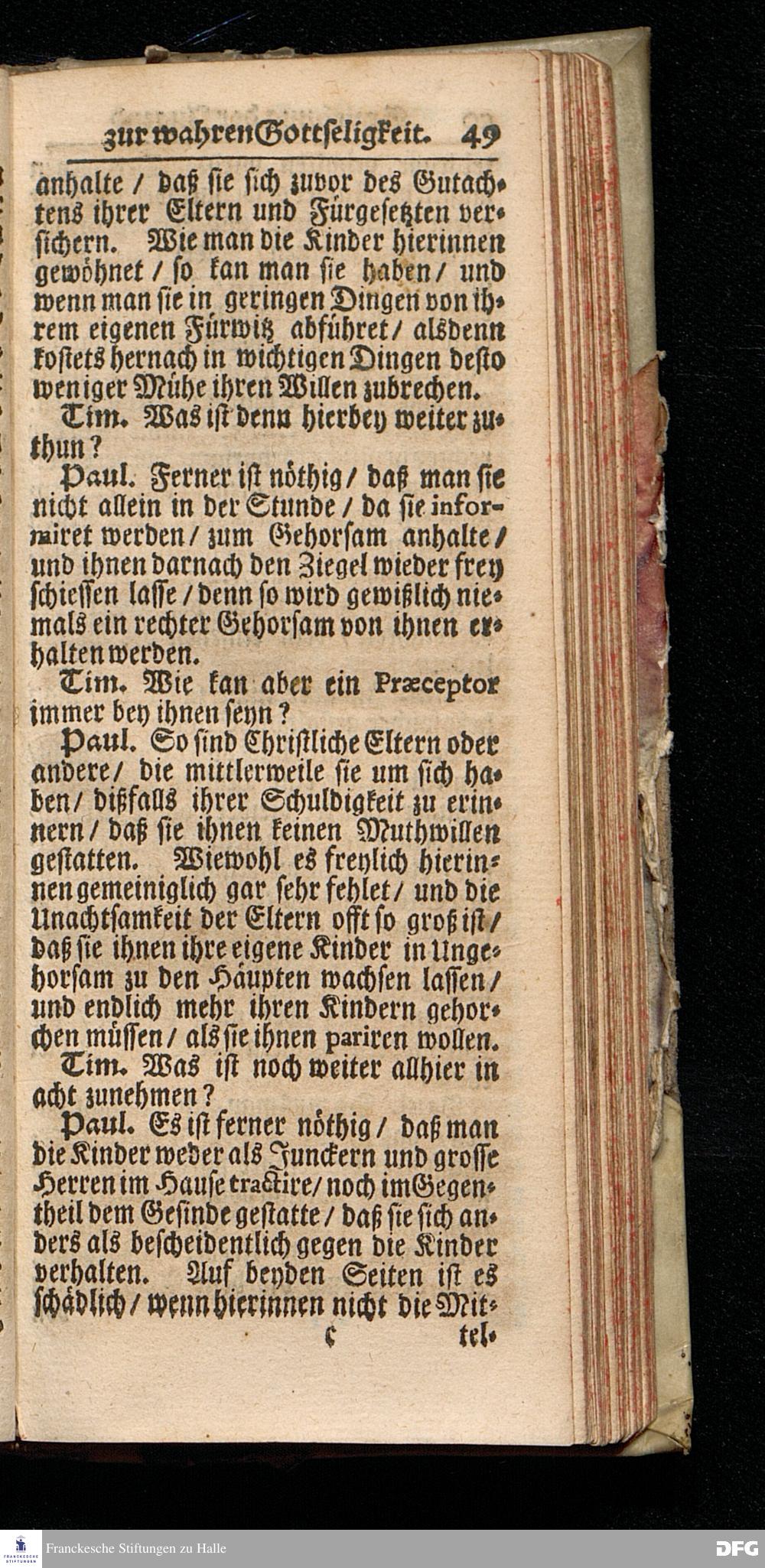 August Hermann Franckens S.Th.Pr.Ord. & Past.Glauch. Unterricht / Wie Die Kinder zur wahren Gottseligkeit und Christlichen Klugheit anzuführen sind / Nunmehro Mit Genehmhaltung des Autoris in zwey Gespräche verfasset von Ambrosius Wirth / jüngsten Suden=Prediger im neuen Spital zu Nürnberg. Christian=Erlang / Gedruckt bey Joh.Friedrich Regelein / In Verlegung des Waysenhauses zu Halle. Anno 1705.