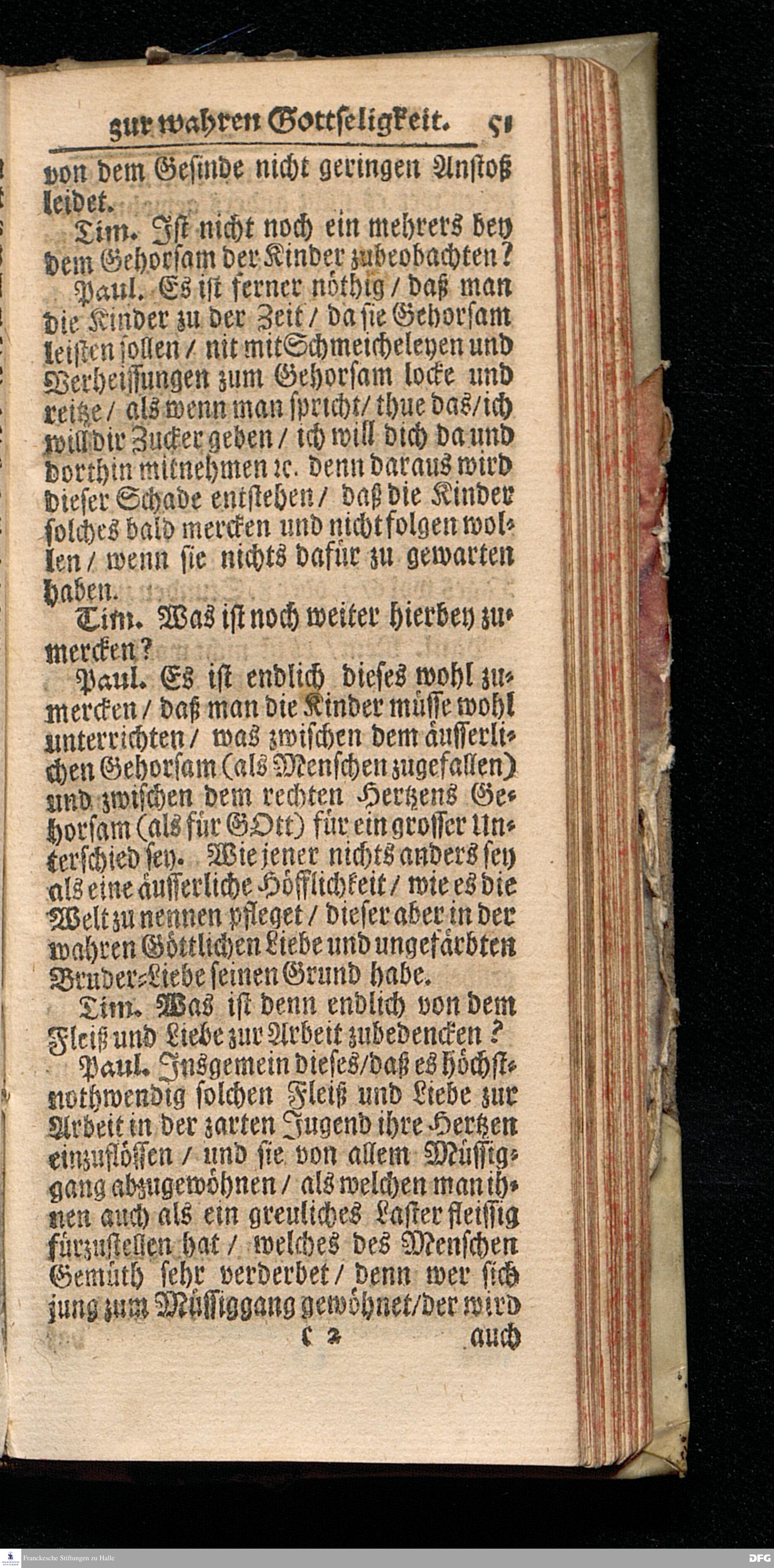August Hermann Franckens S.Th.Pr.Ord. & Past.Glauch. Unterricht / Wie Die Kinder zur wahren Gottseligkeit und Christlichen Klugheit anzuführen sind / Nunmehro Mit Genehmhaltung des Autoris in zwey Gespräche verfasset von Ambrosius Wirth / jüngsten Suden=Prediger im neuen Spital zu Nürnberg. Christian=Erlang / Gedruckt bey Joh.Friedrich Regelein / In Verlegung des Waysenhauses zu Halle. Anno 1705.
