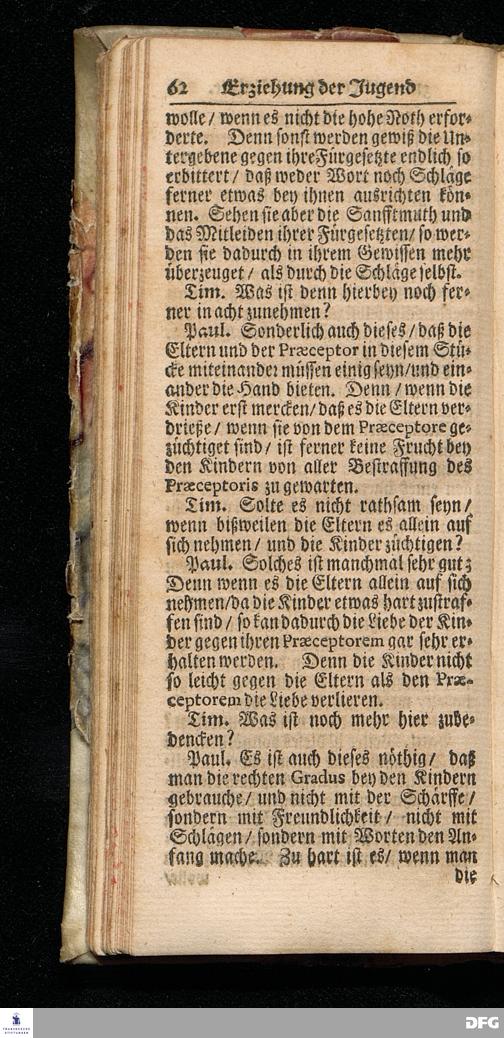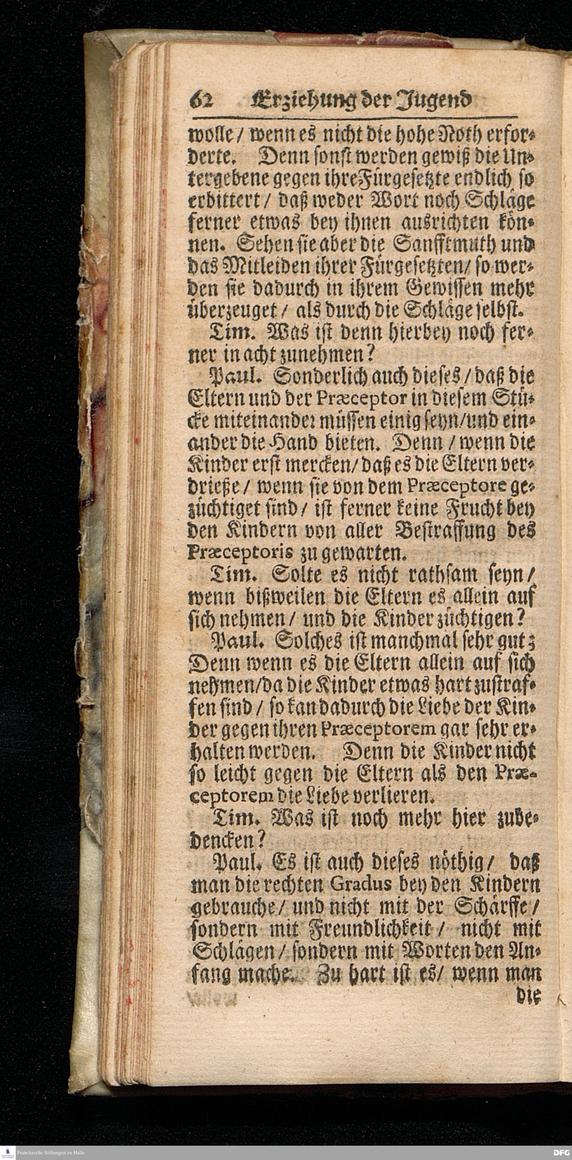 August Hermann Franckens S.Th.Pr.Ord. & Past.Glauch. Unterricht / Wie Die Kinder zur wahren Gottseligkeit und Christlichen Klugheit anzuführen sind / Nunmehro Mit Genehmhaltung des Autoris in zwey Gespräche verfasset von Ambrosius Wirth / jüngsten Suden=Prediger im neuen Spital zu Nürnberg. Christian=Erlang / Gedruckt bey Joh.Friedrich Regelein / In Verlegung des Waysenhauses zu Halle. Anno 1705.