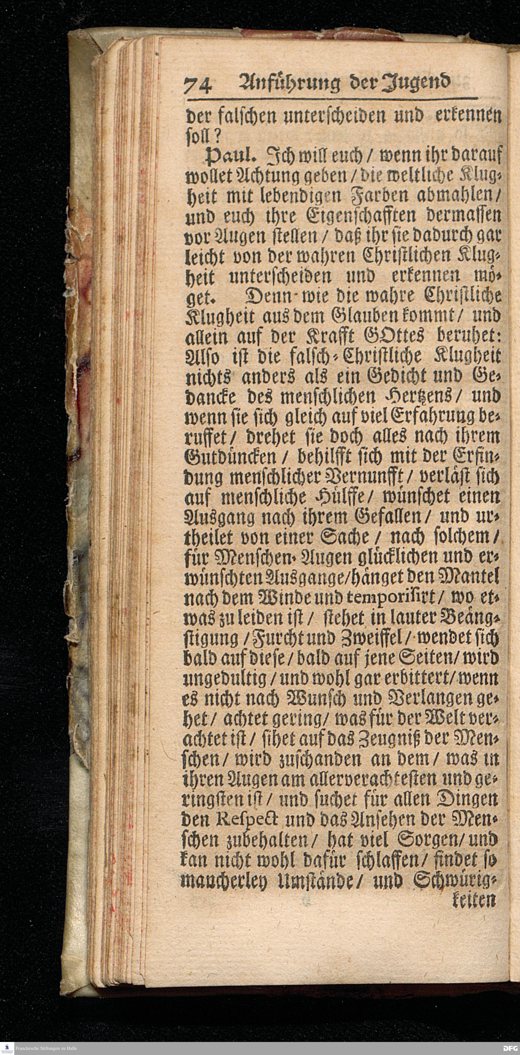 August Hermann Franckens S.Th.Pr.Ord. & Past.Glauch. Unterricht / Wie Die Kinder zur wahren Gottseligkeit und Christlichen Klugheit anzuführen sind / Nunmehro Mit Genehmhaltung des Autoris in zwey Gespräche verfasset von Ambrosius Wirth / jüngsten Suden=Prediger im neuen Spital zu Nürnberg. Christian=Erlang / Gedruckt bey Joh.Friedrich Regelein / In Verlegung des Waysenhauses zu Halle. Anno 1705.