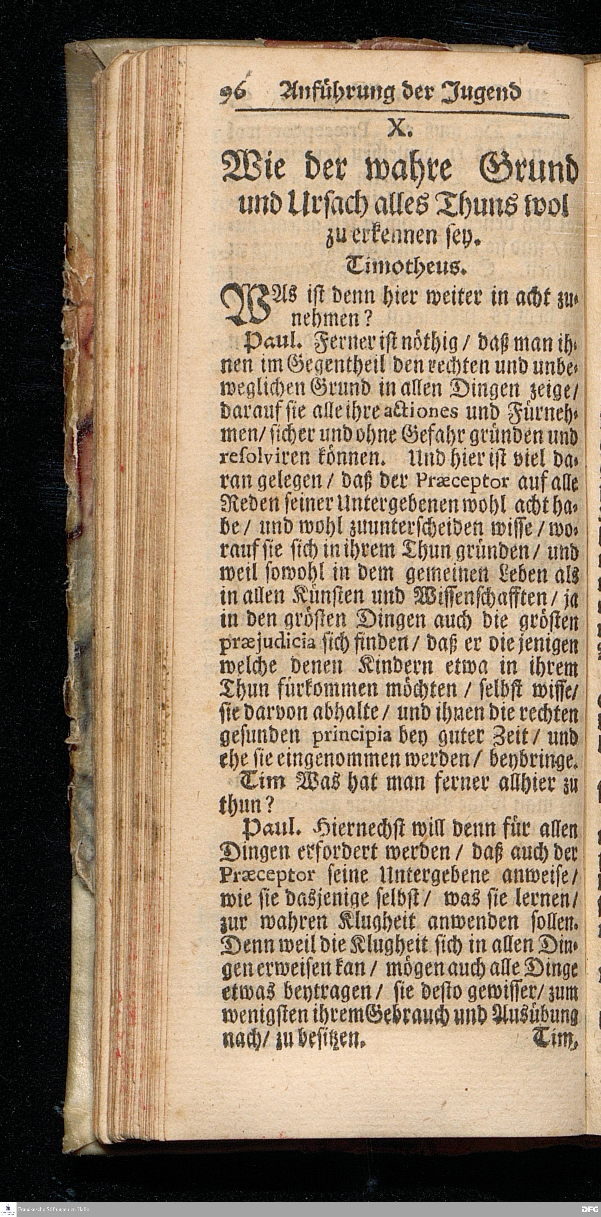 August Hermann Franckens S.Th.Pr.Ord. & Past.Glauch. Unterricht / Wie Die Kinder zur wahren Gottseligkeit und Christlichen Klugheit anzuführen sind / Nunmehro Mit Genehmhaltung des Autoris in zwey Gespräche verfasset von Ambrosius Wirth / jüngsten Suden=Prediger im neuen Spital zu Nürnberg. Christian=Erlang / Gedruckt bey Joh.Friedrich Regelein / In Verlegung des Waysenhauses zu Halle. Anno 1705.