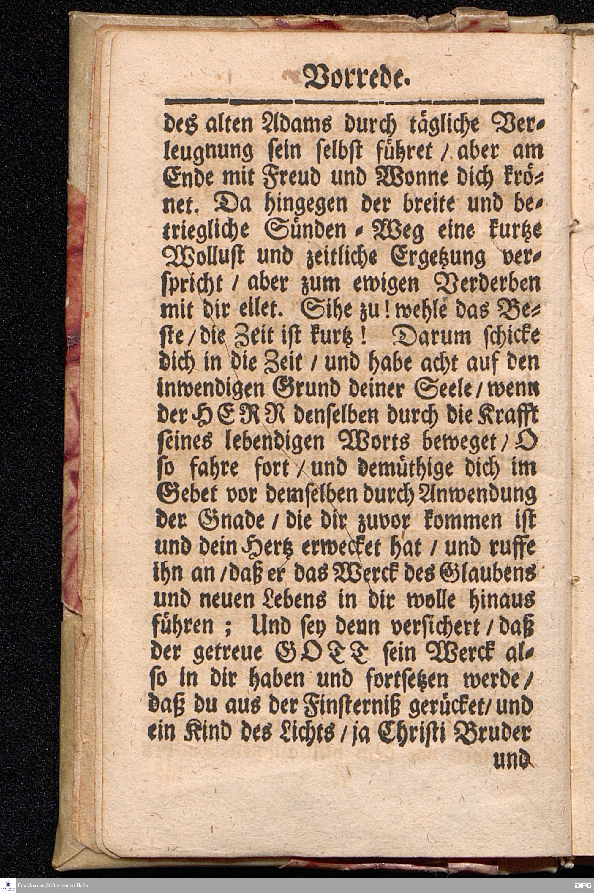 Die Lehre vom Anfang Christliches Lebens / Bestehend in vier Theilen: I. In einer gründlichen Anleitung zu wahrer Buß und Glauben an GOtt. II. In einem einfältigen Unterricht / wie man die H.Schrifft zu seiner wahren Erbauung lesen solle. III. In einer Schrifftmäßigen Anweisung / recht und GOtt gefällig zu beten. IV. In einer kurtzen Prüfung / ob man den wahren lebendigen Glauben an Christum habe oder nicht. Aufs neue verlegt von einer Frauen / so da hertzlich wünscht / daß viele dadurch erbauet werden mögen.