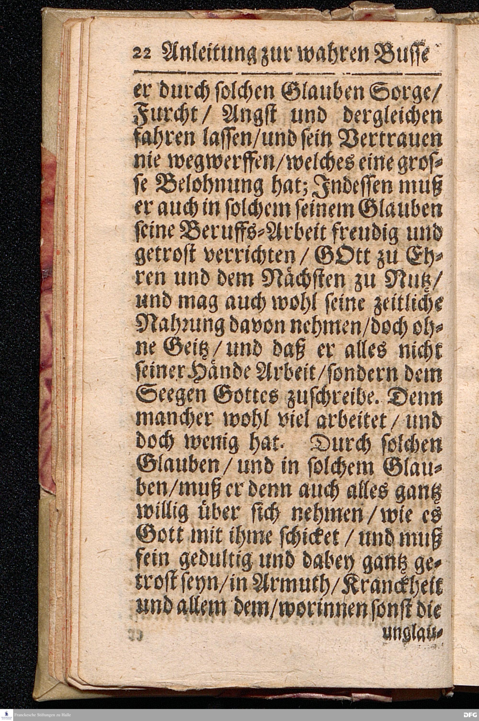 Die Lehre vom Anfang Christliches Lebens / Bestehend in vier Theilen: I. In einer gründlichen Anleitung zu wahrer Buß und Glauben an GOtt. II. In einem einfältigen Unterricht / wie man die H.Schrifft zu seiner wahren Erbauung lesen solle. III. In einer Schrifftmäßigen Anweisung / recht und GOtt gefällig zu beten. IV. In einer kurtzen Prüfung / ob man den wahren lebendigen Glauben an Christum habe oder nicht. Aufs neue verlegt von einer Frauen / so da hertzlich wünscht / daß viele dadurch erbauet werden mögen.