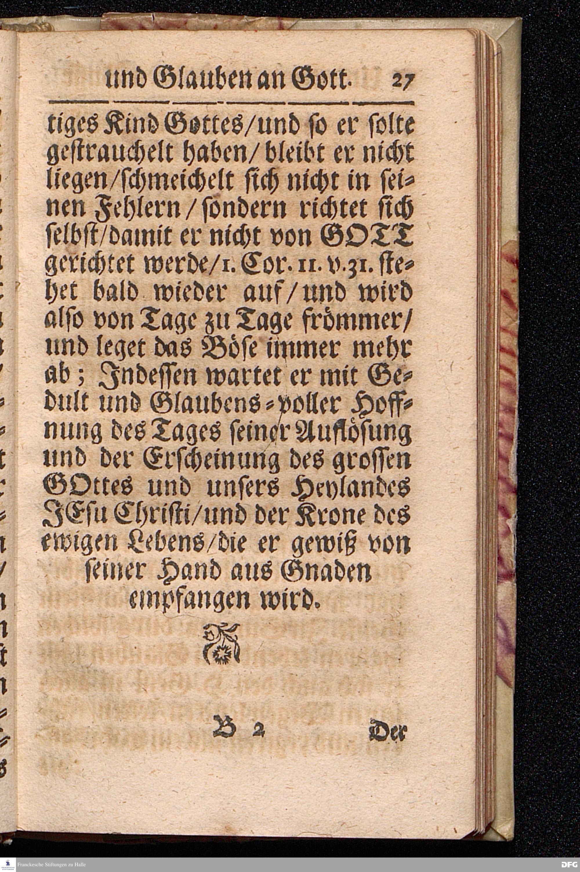 Die Lehre vom Anfang Christliches Lebens / Bestehend in vier Theilen: I. In einer gründlichen Anleitung zu wahrer Buß und Glauben an GOtt. II. In einem einfältigen Unterricht / wie man die H.Schrifft zu seiner wahren Erbauung lesen solle. III. In einer Schrifftmäßigen Anweisung / recht und GOtt gefällig zu beten. IV. In einer kurtzen Prüfung / ob man den wahren lebendigen Glauben an Christum habe oder nicht. Aufs neue verlegt von einer Frauen / so da hertzlich wünscht / daß viele dadurch erbauet werden mögen.