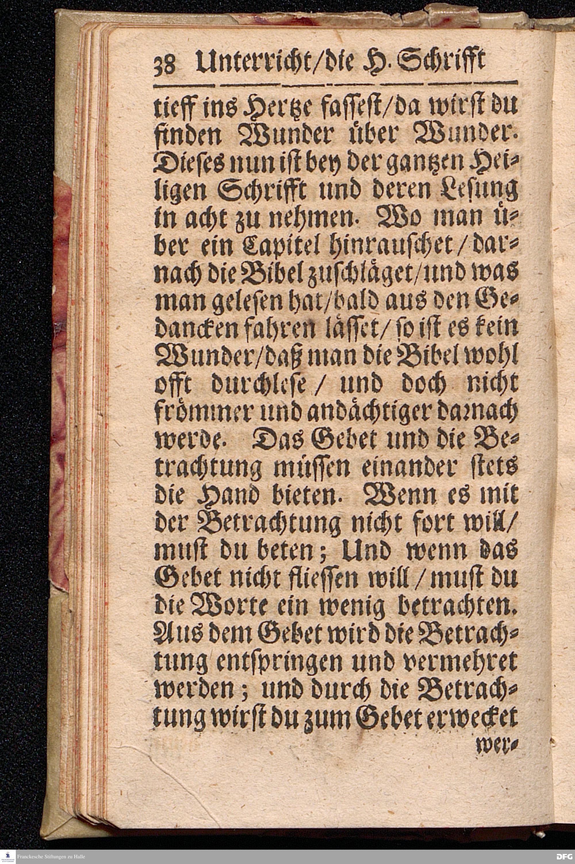 Die Lehre vom Anfang Christliches Lebens / Bestehend in vier Theilen: I. In einer gründlichen Anleitung zu wahrer Buß und Glauben an GOtt. II. In einem einfältigen Unterricht / wie man die H.Schrifft zu seiner wahren Erbauung lesen solle. III. In einer Schrifftmäßigen Anweisung / recht und GOtt gefällig zu beten. IV. In einer kurtzen Prüfung / ob man den wahren lebendigen Glauben an Christum habe oder nicht. Aufs neue verlegt von einer Frauen / so da hertzlich wünscht / daß viele dadurch erbauet werden mögen.