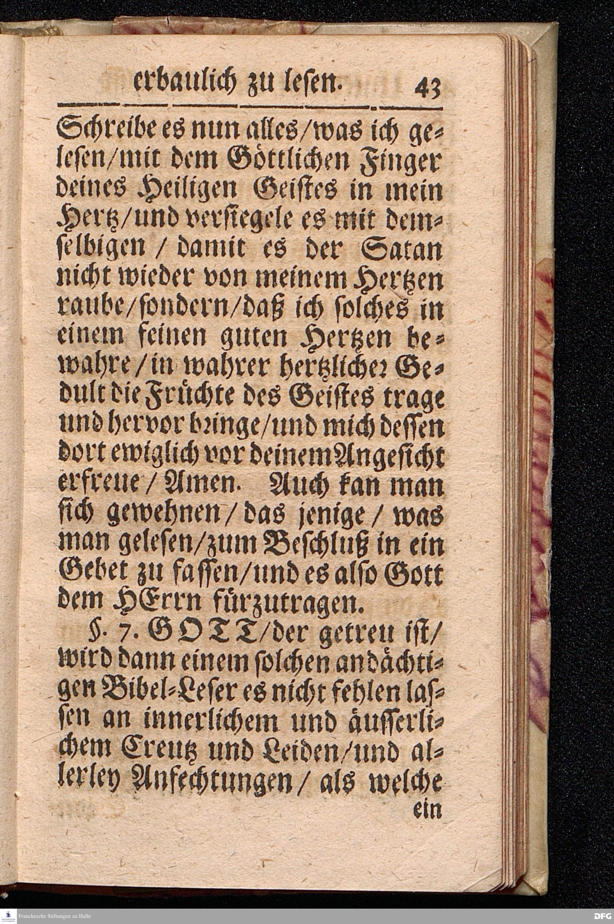 Die Lehre vom Anfang Christliches Lebens / Bestehend in vier Theilen: I. In einer gründlichen Anleitung zu wahrer Buß und Glauben an GOtt. II. In einem einfältigen Unterricht / wie man die H.Schrifft zu seiner wahren Erbauung lesen solle. III. In einer Schrifftmäßigen Anweisung / recht und GOtt gefällig zu beten. IV. In einer kurtzen Prüfung / ob man den wahren lebendigen Glauben an Christum habe oder nicht. Aufs neue verlegt von einer Frauen / so da hertzlich wünscht / daß viele dadurch erbauet werden mögen.