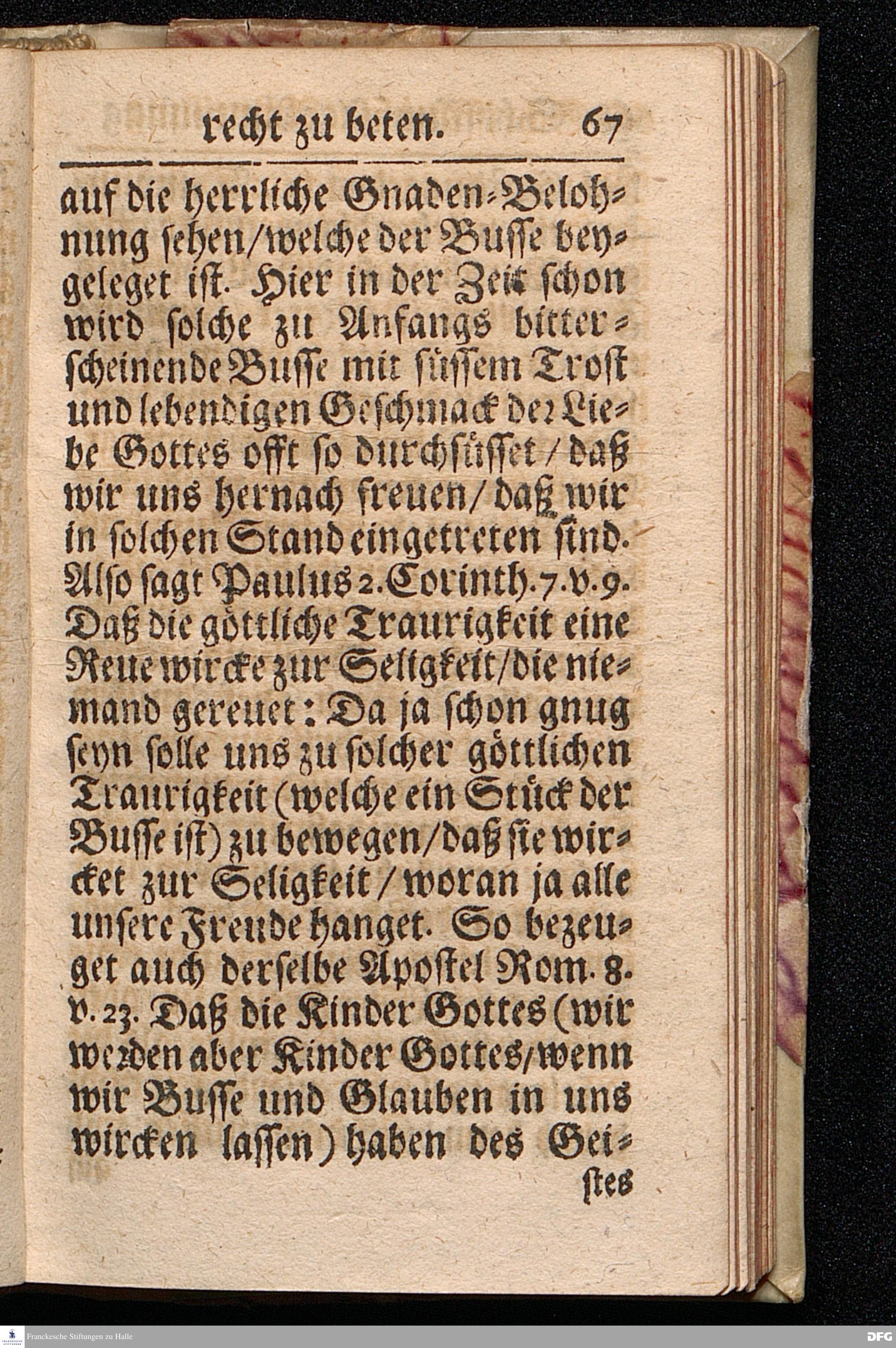 Die Lehre vom Anfang Christliches Lebens / Bestehend in vier Theilen: I. In einer gründlichen Anleitung zu wahrer Buß und Glauben an GOtt. II. In einem einfältigen Unterricht / wie man die H.Schrifft zu seiner wahren Erbauung lesen solle. III. In einer Schrifftmäßigen Anweisung / recht und GOtt gefällig zu beten. IV. In einer kurtzen Prüfung / ob man den wahren lebendigen Glauben an Christum habe oder nicht. Aufs neue verlegt von einer Frauen / so da hertzlich wünscht / daß viele dadurch erbauet werden mögen.