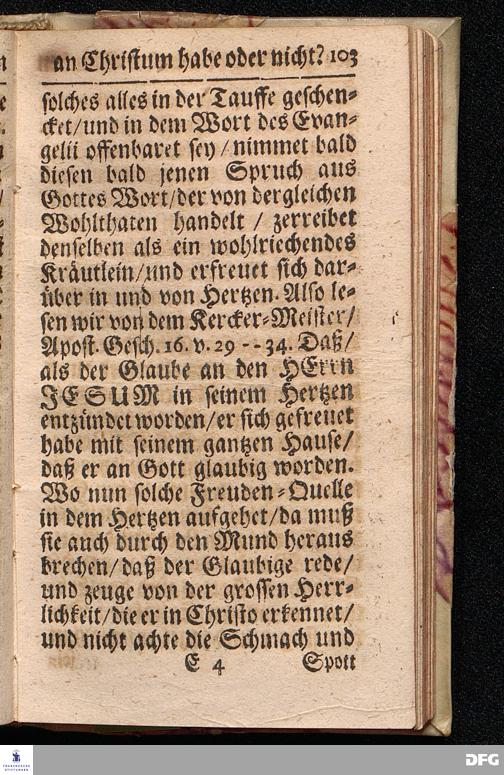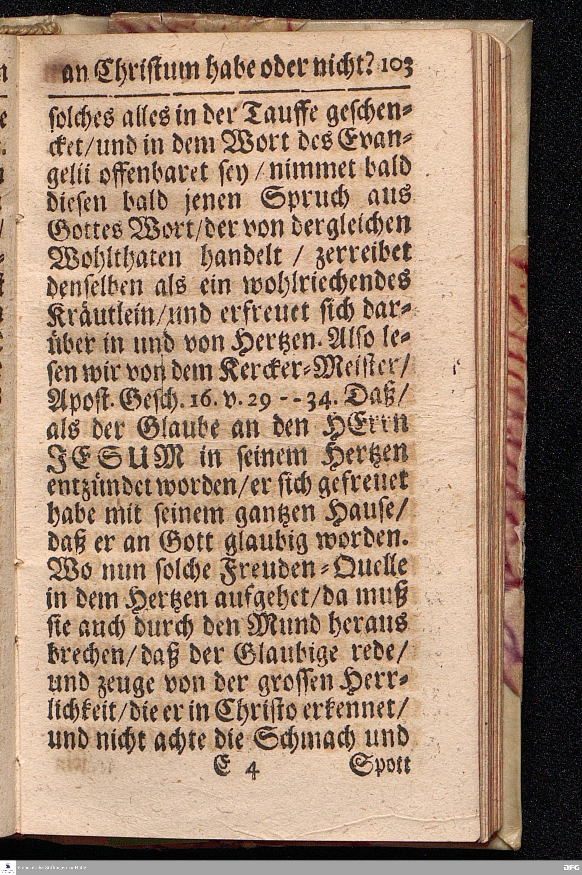 Die Lehre vom Anfang Christliches Lebens / Bestehend in vier Theilen: I. In einer gründlichen Anleitung zu wahrer Buß und Glauben an GOtt. II. In einem einfältigen Unterricht / wie man die H.Schrifft zu seiner wahren Erbauung lesen solle. III. In einer Schrifftmäßigen Anweisung / recht und GOtt gefällig zu beten. IV. In einer kurtzen Prüfung / ob man den wahren lebendigen Glauben an Christum habe oder nicht. Aufs neue verlegt von einer Frauen / so da hertzlich wünscht / daß viele dadurch erbauet werden mögen.