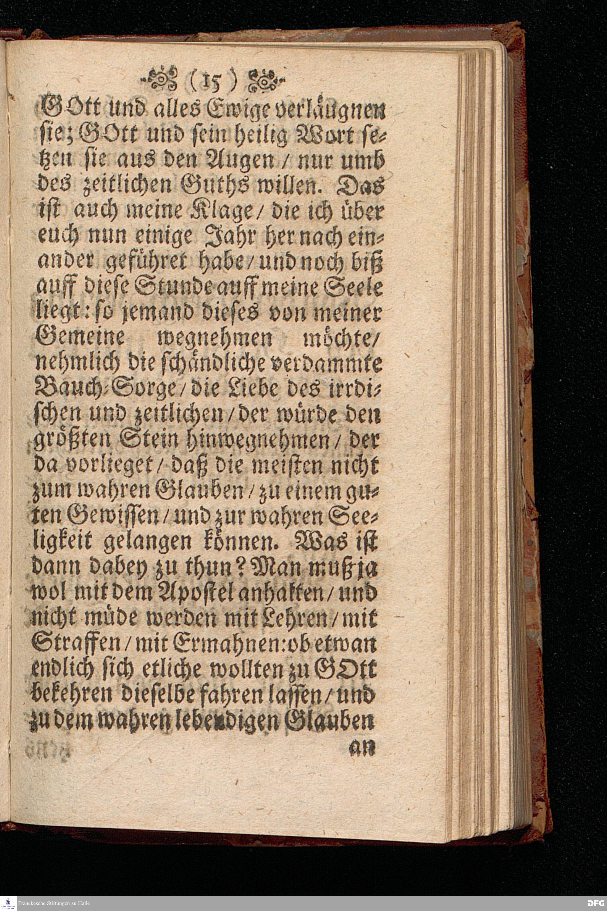 Die Beschwerung des Hertzens Mit der Sorge der Nahrung / In einer Predigt Uber das Evangelium Matth.VI, vers.24==34. Am 15.Sonntag nach Trinitatis Anno 1697, In der St.Georgen=Kirche zu Glaucha an Halle vorgestellet von M.August Hermann Francken / Gr.& OO.LL.P.P.& P.Glauch. Halle / druckts Christian Henckel / 1698.