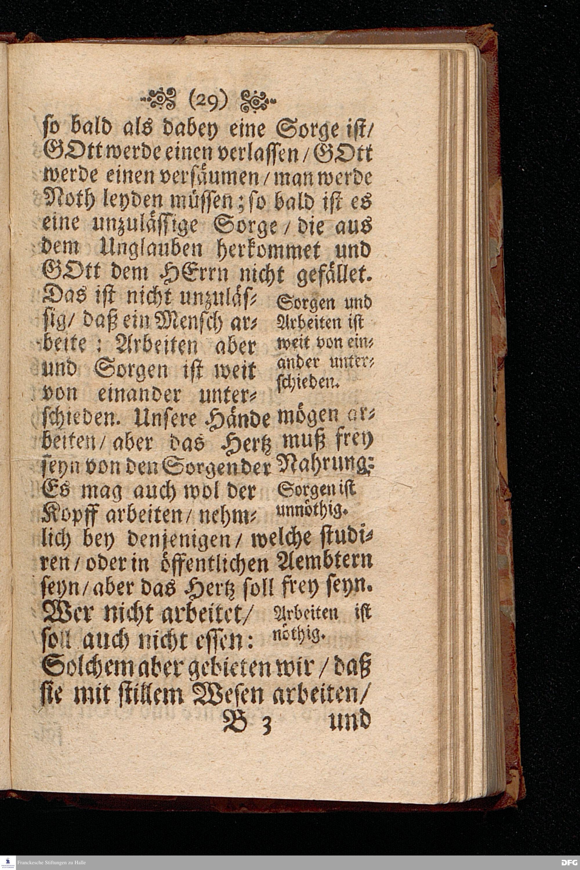 Die Beschwerung des Hertzens Mit der Sorge der Nahrung / In einer Predigt Uber das Evangelium Matth.VI, vers.24==34. Am 15.Sonntag nach Trinitatis Anno 1697, In der St.Georgen=Kirche zu Glaucha an Halle vorgestellet von M.August Hermann Francken / Gr.& OO.LL.P.P.& P.Glauch. Halle / druckts Christian Henckel / 1698.