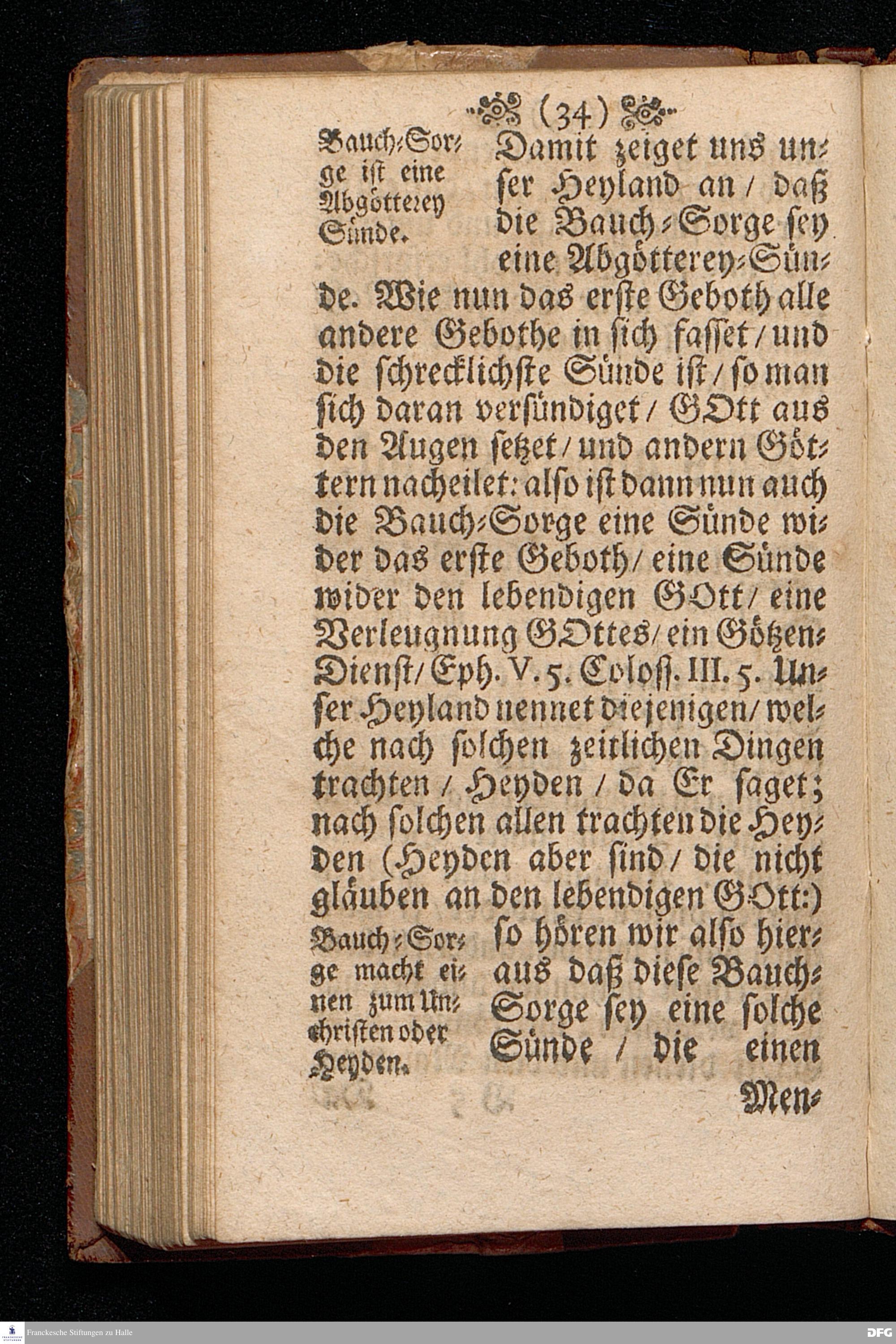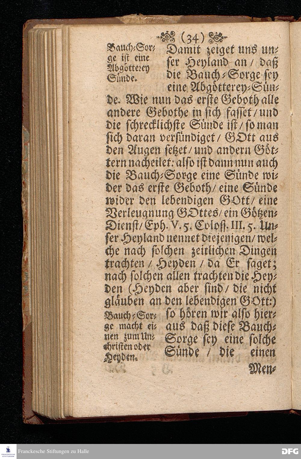 Die Beschwerung des Hertzens Mit der Sorge der Nahrung / In einer Predigt Uber das Evangelium Matth.VI, vers.24==34. Am 15.Sonntag nach Trinitatis Anno 1697, In der St.Georgen=Kirche zu Glaucha an Halle vorgestellet von M.August Hermann Francken / Gr.& OO.LL.P.P.& P.Glauch. Halle / druckts Christian Henckel / 1698.