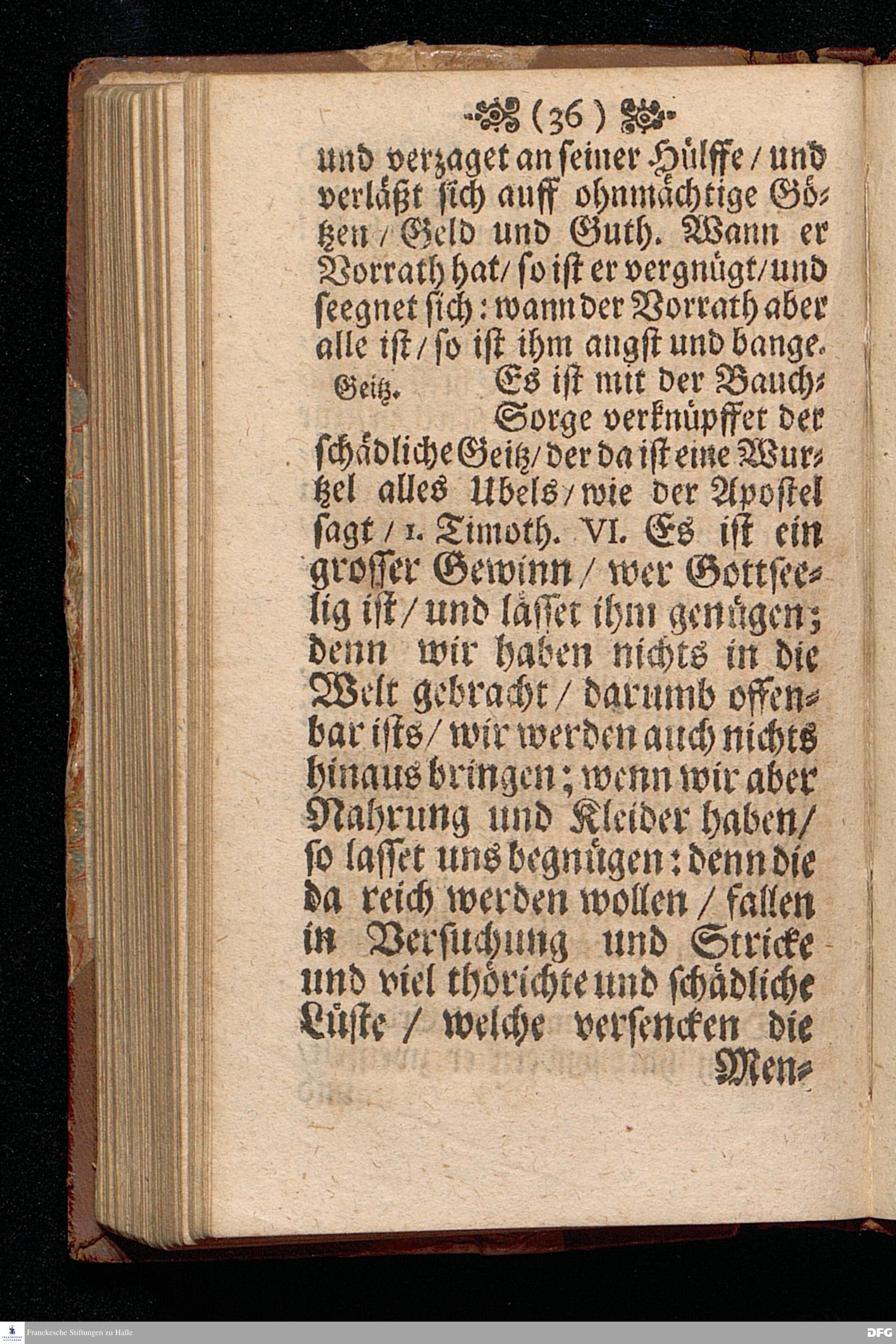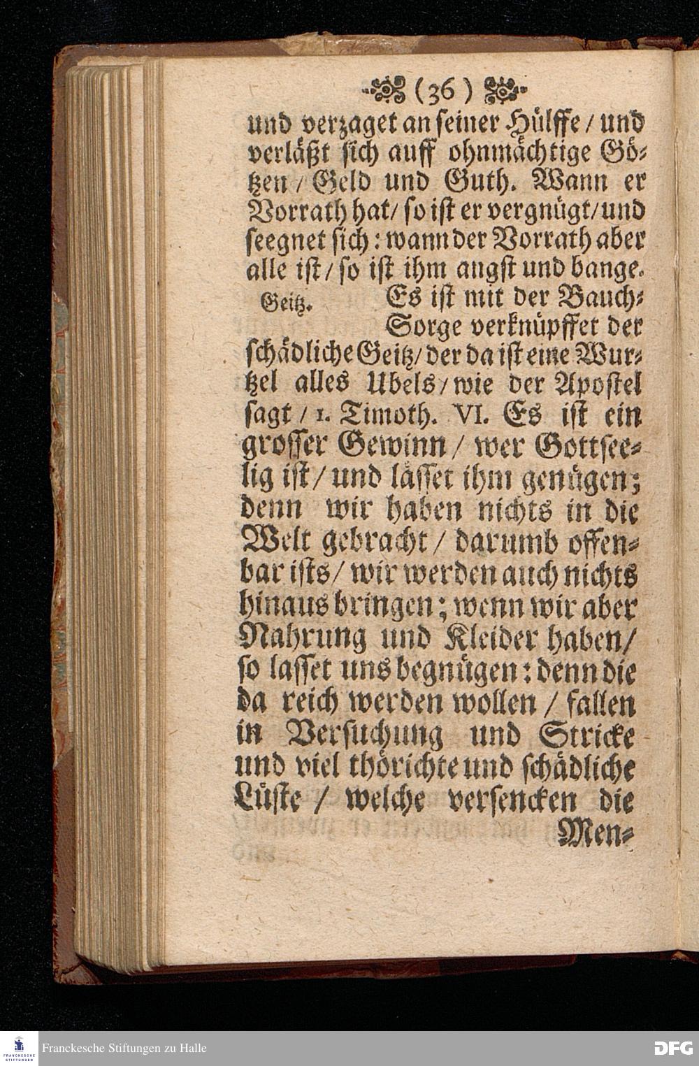 Die Beschwerung des Hertzens Mit der Sorge der Nahrung / In einer Predigt Uber das Evangelium Matth.VI, vers.24==34. Am 15.Sonntag nach Trinitatis Anno 1697, In der St.Georgen=Kirche zu Glaucha an Halle vorgestellet von M.August Hermann Francken / Gr.& OO.LL.P.P.& P.Glauch. Halle / druckts Christian Henckel / 1698.