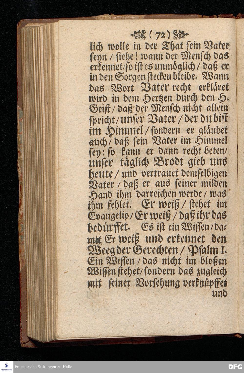 Die Beschwerung des Hertzens Mit der Sorge der Nahrung / In einer Predigt Uber das Evangelium Matth.VI, vers.24==34. Am 15.Sonntag nach Trinitatis Anno 1697, In der St.Georgen=Kirche zu Glaucha an Halle vorgestellet von M.August Hermann Francken / Gr.& OO.LL.P.P.& P.Glauch. Halle / druckts Christian Henckel / 1698.