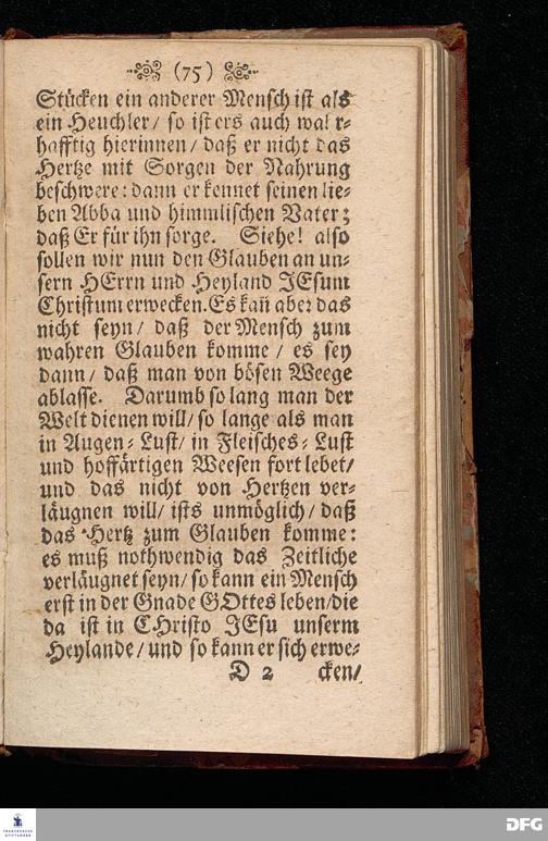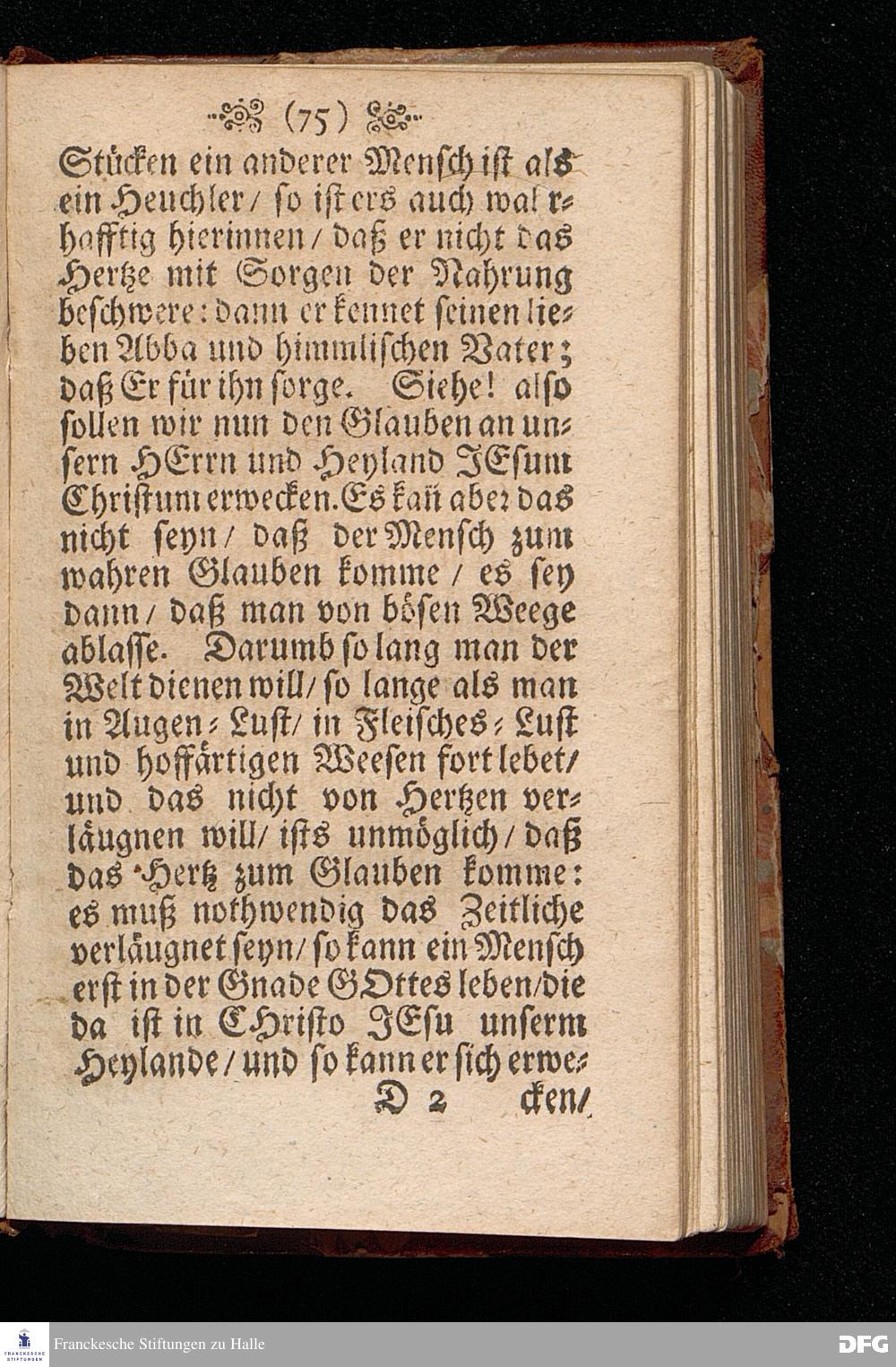 Die Beschwerung des Hertzens Mit der Sorge der Nahrung / In einer Predigt Uber das Evangelium Matth.VI, vers.24==34. Am 15.Sonntag nach Trinitatis Anno 1697, In der St.Georgen=Kirche zu Glaucha an Halle vorgestellet von M.August Hermann Francken / Gr.& OO.LL.P.P.& P.Glauch. Halle / druckts Christian Henckel / 1698.