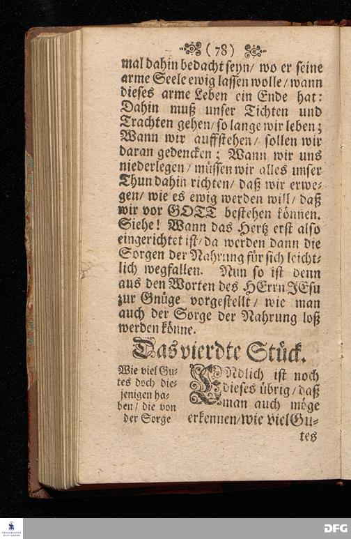 Die Beschwerung des Hertzens Mit der Sorge der Nahrung / In einer Predigt Uber das Evangelium Matth.VI, vers.24==34. Am 15.Sonntag nach Trinitatis Anno 1697, In der St.Georgen=Kirche zu Glaucha an Halle vorgestellet von M.August Hermann Francken / Gr.& OO.LL.P.P.& P.Glauch. Halle / druckts Christian Henckel / 1698.