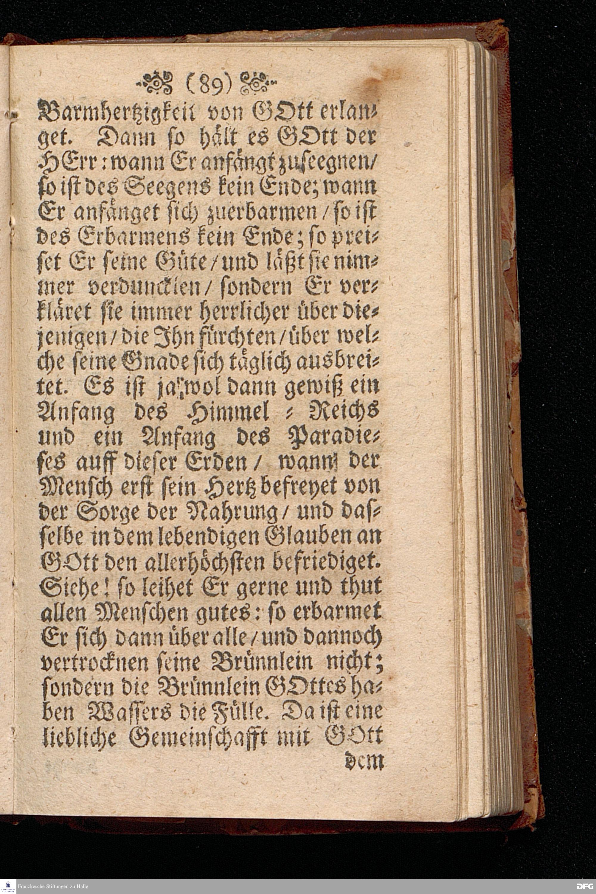 Die Beschwerung des Hertzens Mit der Sorge der Nahrung / In einer Predigt Uber das Evangelium Matth.VI, vers.24==34. Am 15.Sonntag nach Trinitatis Anno 1697, In der St.Georgen=Kirche zu Glaucha an Halle vorgestellet von M.August Hermann Francken / Gr.& OO.LL.P.P.& P.Glauch. Halle / druckts Christian Henckel / 1698.