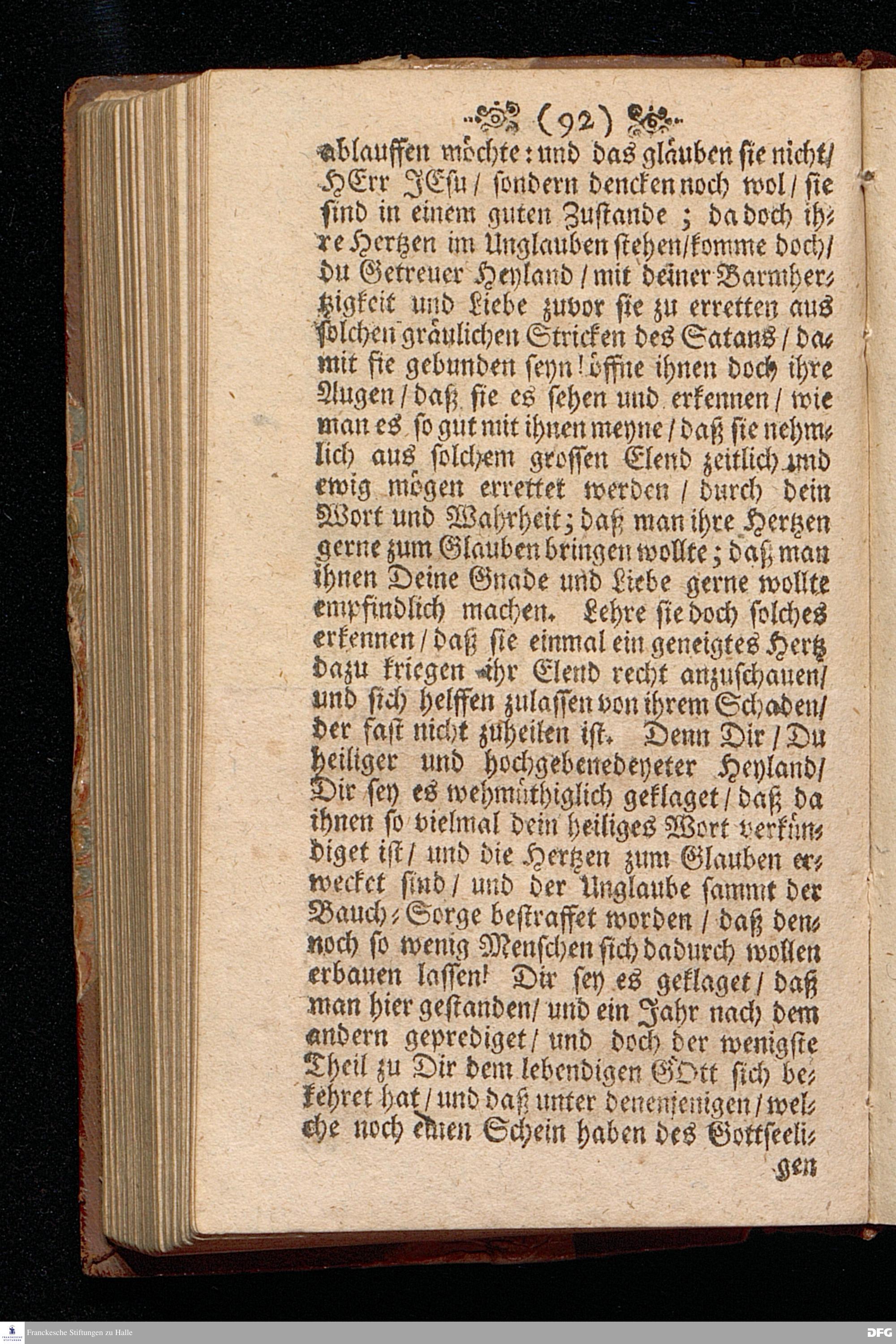 Die Beschwerung des Hertzens Mit der Sorge der Nahrung / In einer Predigt Uber das Evangelium Matth.VI, vers.24==34. Am 15.Sonntag nach Trinitatis Anno 1697, In der St.Georgen=Kirche zu Glaucha an Halle vorgestellet von M.August Hermann Francken / Gr.& OO.LL.P.P.& P.Glauch. Halle / druckts Christian Henckel / 1698.