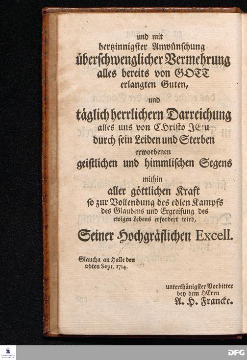 August Hermann Franckens S.THEOL.PROF.ORD.und PAST. Öffentliche Reden Uber die Paßions=Historie, Wie dieselbe Vom Evangelisten Marco im 14. und 15. Cap. beschrieben ist, Gehalten von Esto mihi bis Ostern 1712. In dem Waysenhause zu Glaucha an Halle. Vierte Edition. HALLE, verlegt im Wäysenhause, 1751.
