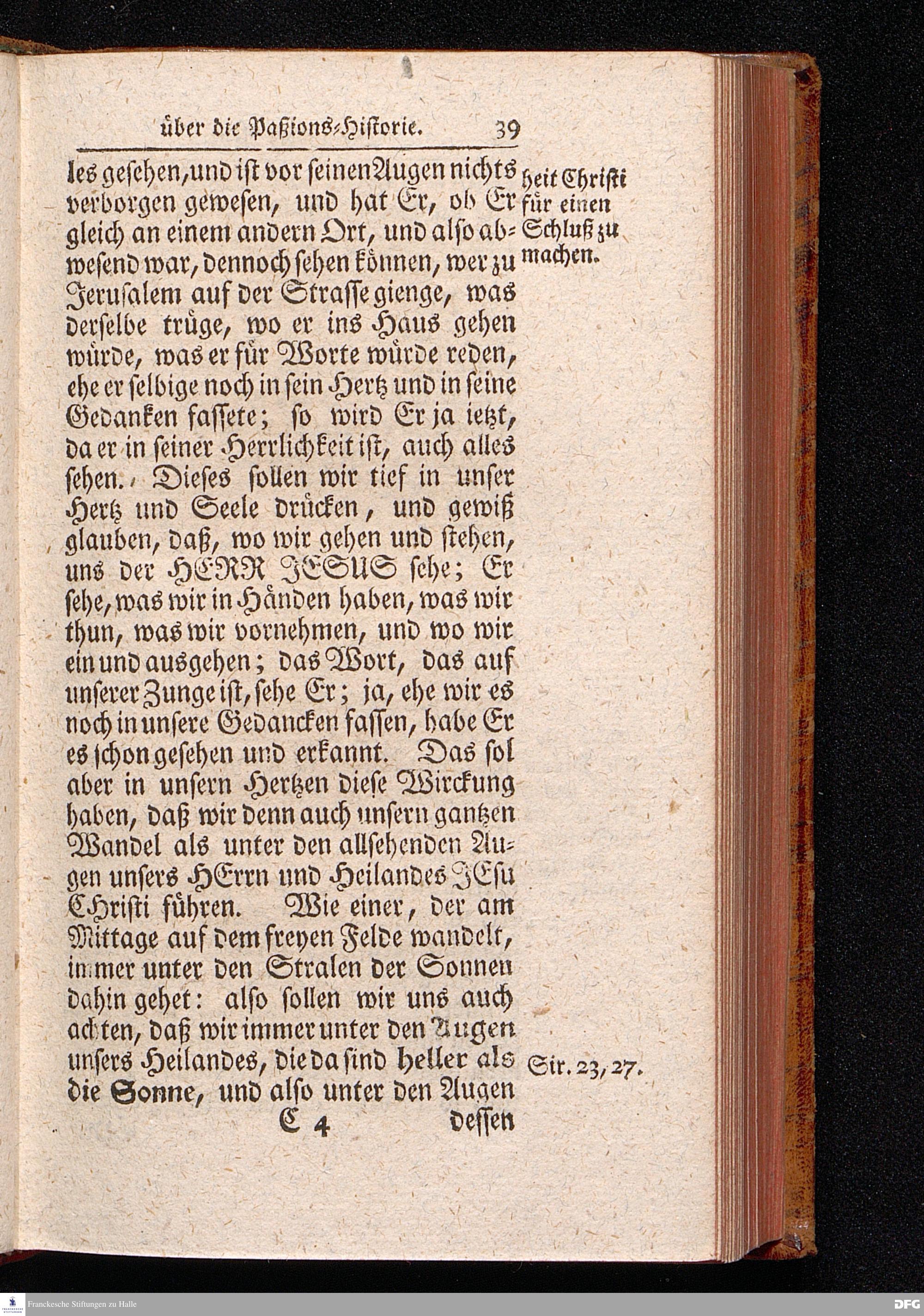 August Hermann Franckens S.THEOL.PROF.ORD.und PAST. Öffentliche Reden Uber die Paßions=Historie, Wie dieselbe Vom Evangelisten Marco im 14. und 15. Cap. beschrieben ist, Gehalten von Esto mihi bis Ostern 1712. In dem Waysenhause zu Glaucha an Halle. Vierte Edition. HALLE, verlegt im Wäysenhause, 1751.